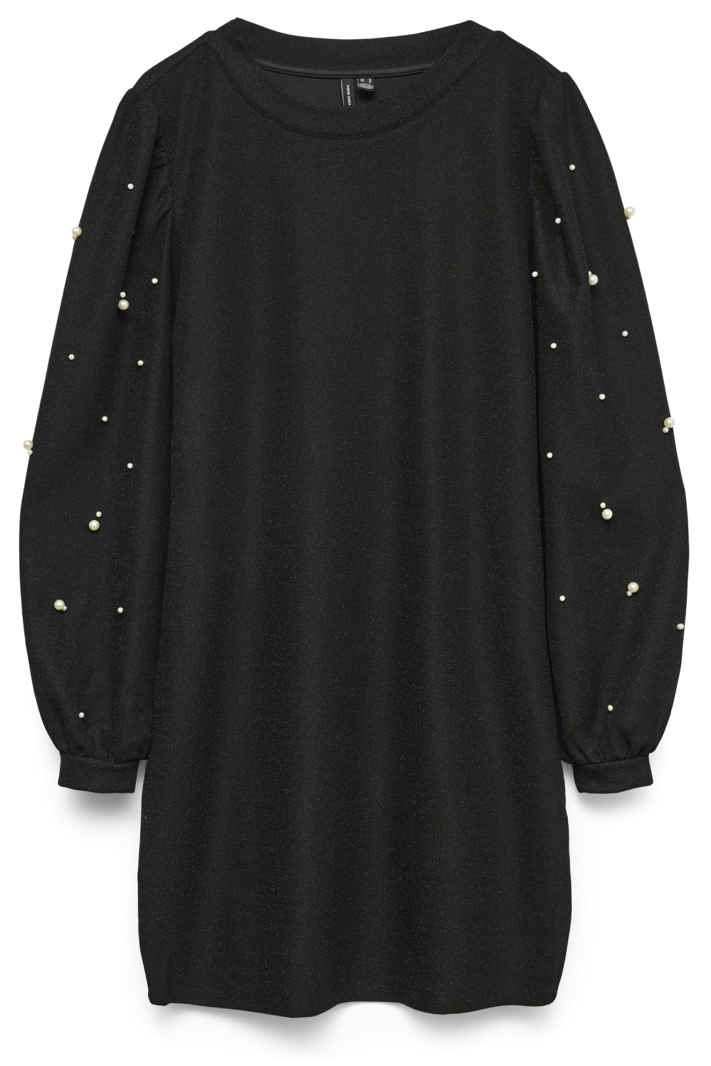 De Vero Moda jurk is een stijlvolle toevoeging aan je wintergarderobe. Met zijn elegante zwarte kleur en verfijnde parelpatroon op de mouwen, straal je altijd klasse uit. De jurk heeft een ronde halslijn en een regular fit, waardoor hij comfortabel te dragen is zonder in te boeten op stijl. De lange mouwen maken hem perfect voor koude dagen en geven extra flair aan het ontwerp. Deze casual jurk is ideaal voor verschillende gelegenheden. Of je nu een dagje uit bent met vrienden of een informeel feestje hebt, met deze jurk zit je altijd goed. De korte lengte zorgt voor een moderne look, terwijl het duurzame materiaal garant staat voor langdurig draagplezier. Combineer hem met een paar stijlvolle hakken voor een complete outfit. Voeg deze veelzijdige Vero Moda jurk toe aan je collectie voor een tijdloze, stijlvolle look. Meer informatie: De totale lengte is 83 cm bij maat S.