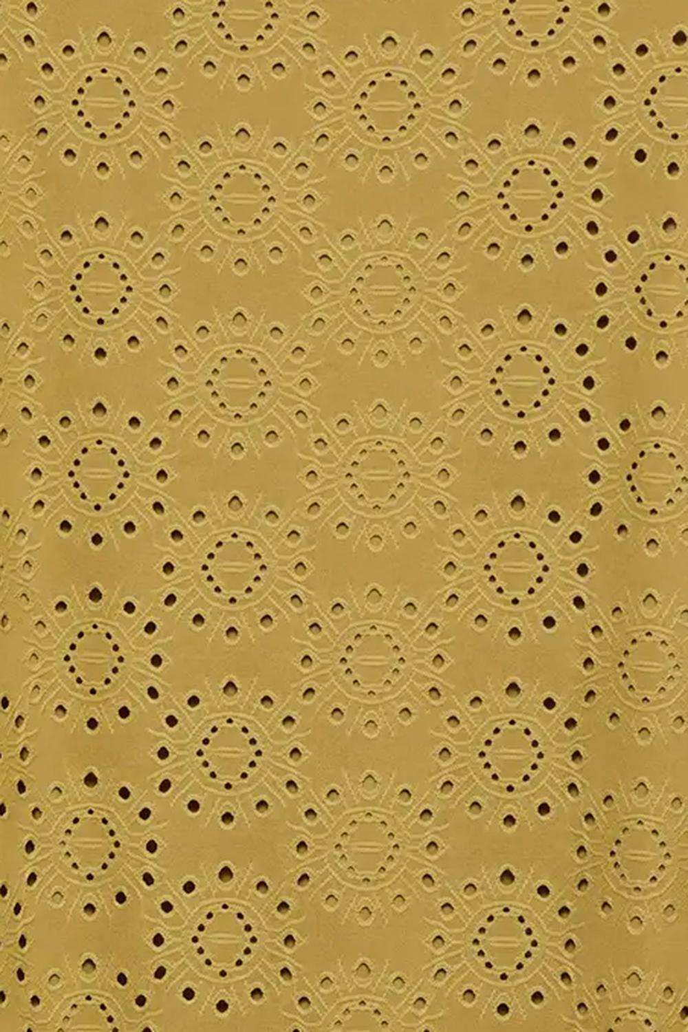 De Vero Moda jurk, in een frisse mosterdgele tint, is een casual zomerjurk die perfect is voor zonnige dagen. Gemaakt van 95% gerecycled polyester en 5% elastan, biedt de jurk een lichte en ademende stof die comfortabel aanvoelt op je huid. De ajourpatroon, dat bestaat uit speelse openingen in de stof, geeft de jurk een unieke en verfijnde textuur. Deze mouwloze jurk heeft een elegante boothals en een kort model dat ideaal is voor warme zomerse dagen. Met zijn regular fit pasvorm sluit deze jurk mooi aan zonder te strak te zitten, waardoor hij geschikt is voor uiteenlopende gelegenheden. Of je nu een dagje naar het strand gaat of een informele brunch met vrienden hebt, deze Vero Moda jurk is een veelzijdige keuze. Combineer hem met sandalen voor een laid-back look, of draag hakken voor een iets meer geklede uitstraling. De duurzaamheid van het gebruikte materiaal maakt het bovendien een bewuste keuze voor je garderobe. Meer informatie: De totale lengte is 89 cm bij maat S.