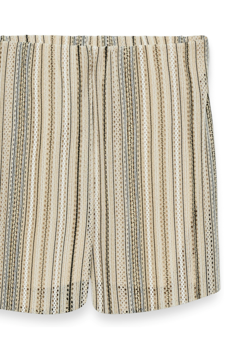 Deze casual korte broek van Vero Moda is een stijlvolle en duurzame keuze voor elk lente avontuur. De broek heeft een unieke structuur die subtiel opvalt door de beige en zwarte strepen, wat een speelse maar verfijnde uitstraling geeft. Dankzij de elastische boord geniet je van extra comfort en een perfecte pasvorm, waardoor je je vrij kunt bewegen. Gemaakt van 98% gerecycled polyester en 2% elastaan, biedt deze korte broek van Vero Moda zowel stijl als milieubewustzijn. De regular fit zorgt voor een relaxte look, ideaal voor een dagje in het park of een informele lunch met vrienden. Deze korte broek combineert moeiteloos met een luchtige top of een simpele T-shirt, en raakt nooit uit de mode. Zonder zakken blijft het ontwerp strak en minimalistisch, zodat jij er altijd verzorgd uitziet.