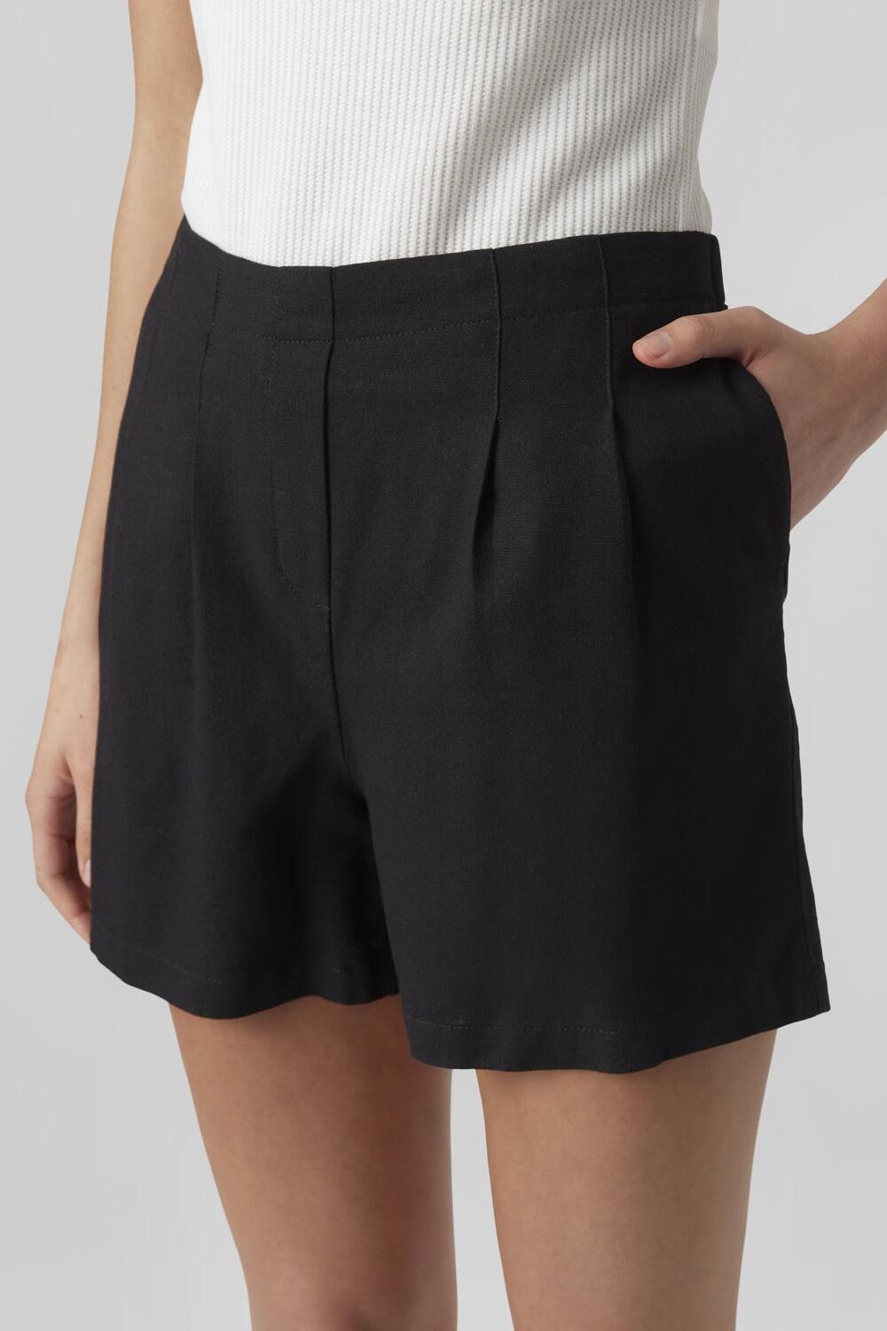 Deze zwarte korte broek van Vero Moda is een stijlvolle toevoeging aan je garderobe. De broek heeft een regular fit en is ontworpen met een elastische boord voor optimaal draagcomfort. Met een high waist model en steekzakken biedt deze broek niet alleen stijl maar ook praktische functies. Het gebruik van duurzame materialen, zoals 55% Viscose Lenzing Ecovero en 45% Linnen, zorgt voor een lichte en ademende stof met een subtiele structuur. Deze korte broek is ideaal voor casual situaties, zoals een dagje uit of een ontspannen middag in het park. De tijdloze zwarte kleur maakt het eenvoudig te combineren met diverse tops en accessoires. Of je hem nu draagt met een simpele T-shirt of een elegante blouse, het biedt een veelzijdige basis voor diverse outfits. Voeg dit veelzijdige item toe aan je kledingkast voor een frisse en moderne uitstraling die bij elke gelegenheid past.