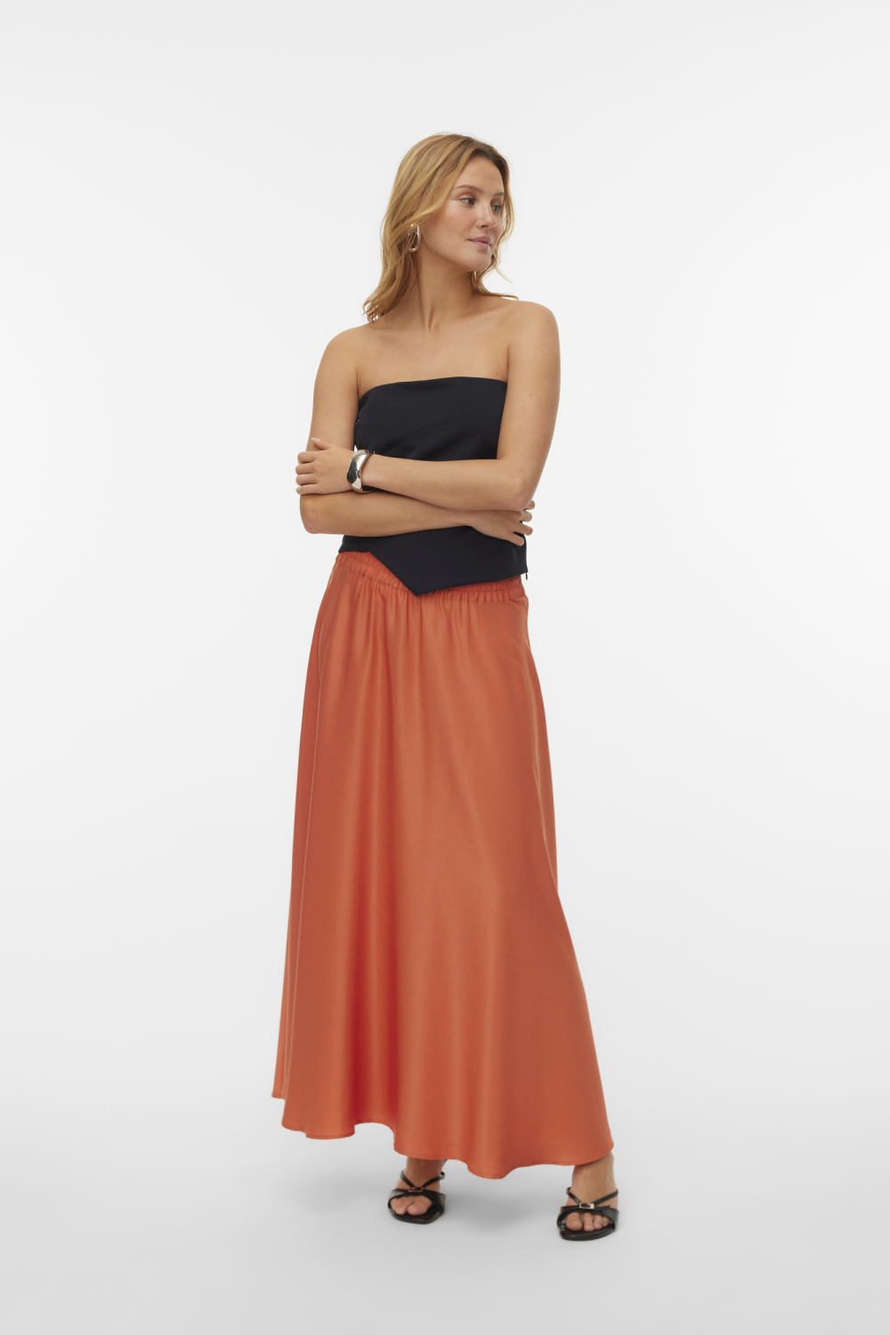 Deze elegante lange rok van Vero Moda, met zijn warme oranje tint, is een prachtige toevoeging aan je zomercollectie. De rok heeft een casual stijl en een regular pasvorm die door de elastische boord comfortabel om je taille valt. De subtiele glans in de stof geeft een verfijnde uitstraling, ideaal voor zowel informele als meer formele gelegenheden. De lichte beweging van de stof zorgt voor een luchtige flair, wat deze rok perfect maakt voor warme zomerdagen of een avondje uit. Met de Vero Moda rok kun je eindeloos variëren in je styling. Combineer deze met een eenvoudige top en sandalen voor een relaxed dagje strand, of kleed hem af met een blousje en hakken voor een zomerse cocktailparty. Deze duurzame rok biedt niet alleen stijl, maar ook veelzijdigheid waardoor hij moeiteloos bij verschillende gelegenheden past. Zo ben je altijd stijlvol gekleed, ongeacht de gelegenheid.