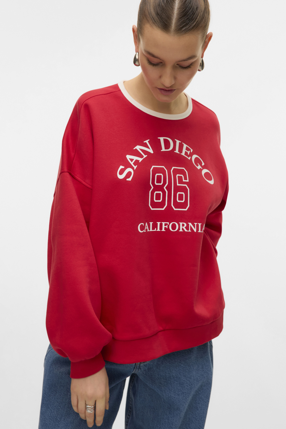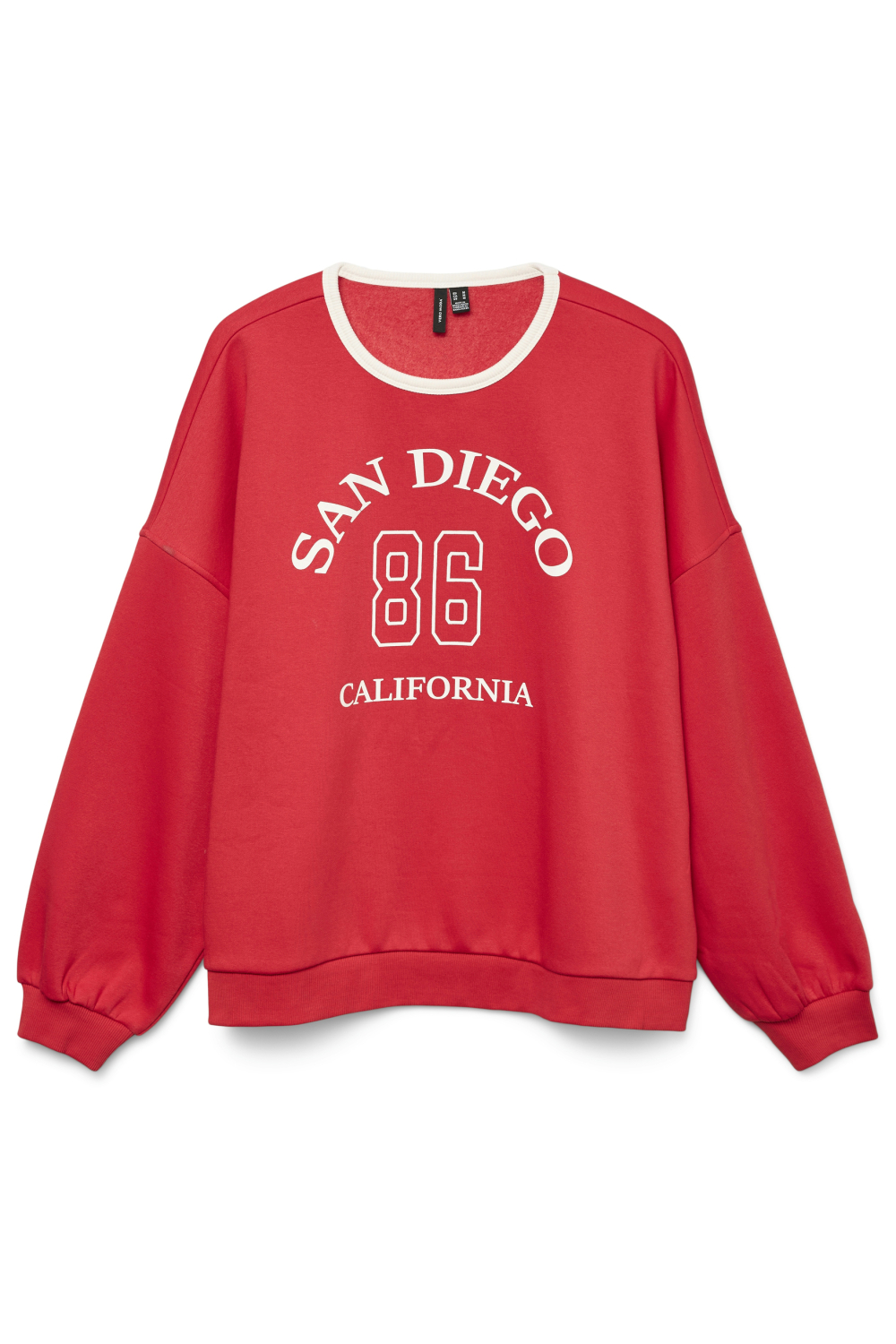 De rode San Diego sweater van Vero Moda is een stijlvolle toevoeging aan jouw wintergarderobe. Gemaakt van 70% biologisch katoen en 30% polyester, biedt deze sweater een duurzame keuze die comfortabel en milieuvriendelijk is. De regular fit pasvorm zorgt voor een ontspannen look, terwijl de lange mouwen en ronde hals perfect passen bij de casual stijl van deze trui. Het opvallende "San Diego 86 California" patroon op de borst voegt een speels en jeugdig element toe aan je outfit. Deze Vero Moda sweater is ideaal voor verschillende gelegenheden, of je nu een ontspannen dag thuis plant of een casual uitstapje maakt. Combineer hem met je favoriete jeans voor een moeiteloze, maar trendy look. De normale lengte maakt het makkelijk om hem laag over broeken te dragen, terwijl de rijke rode kleur warmte en flair toevoegt aan het seizoen. Deze sweater is een veelzijdig stuk dat je zowel in je dagelijkse leven als tijdens informele bijeenkomsten goed kunt dragen.
