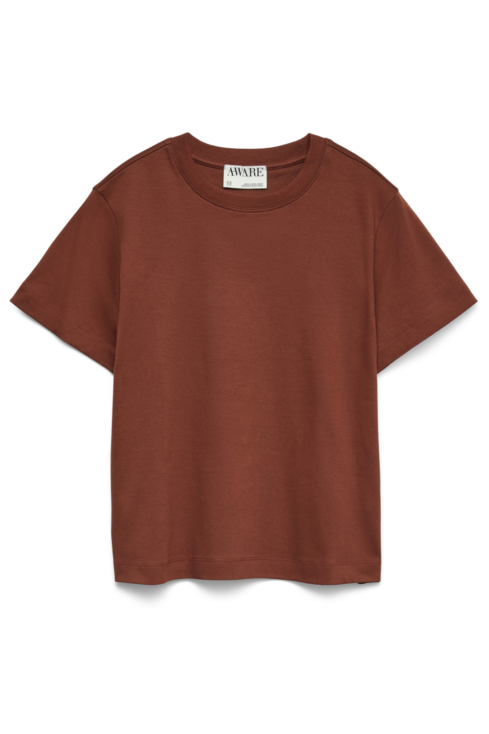 Dit casual T-shirt van Vero Moda in de kleur Brandy Brown is een veelzijdige toevoeging aan jouw garderobe. Gemaakt van 100% biologisch katoen biedt dit T-shirt niet alleen comfort maar ook een milieubewuste keuze. De relaxed fit en de ronde hals zorgen voor een speelse en ontspannen uitstraling, ideaal voor dagelijkse activiteiten. Of je nu kiest voor een wandeling in het park of een ontspannen dag thuis, dit T-shirt is een perfecte match.