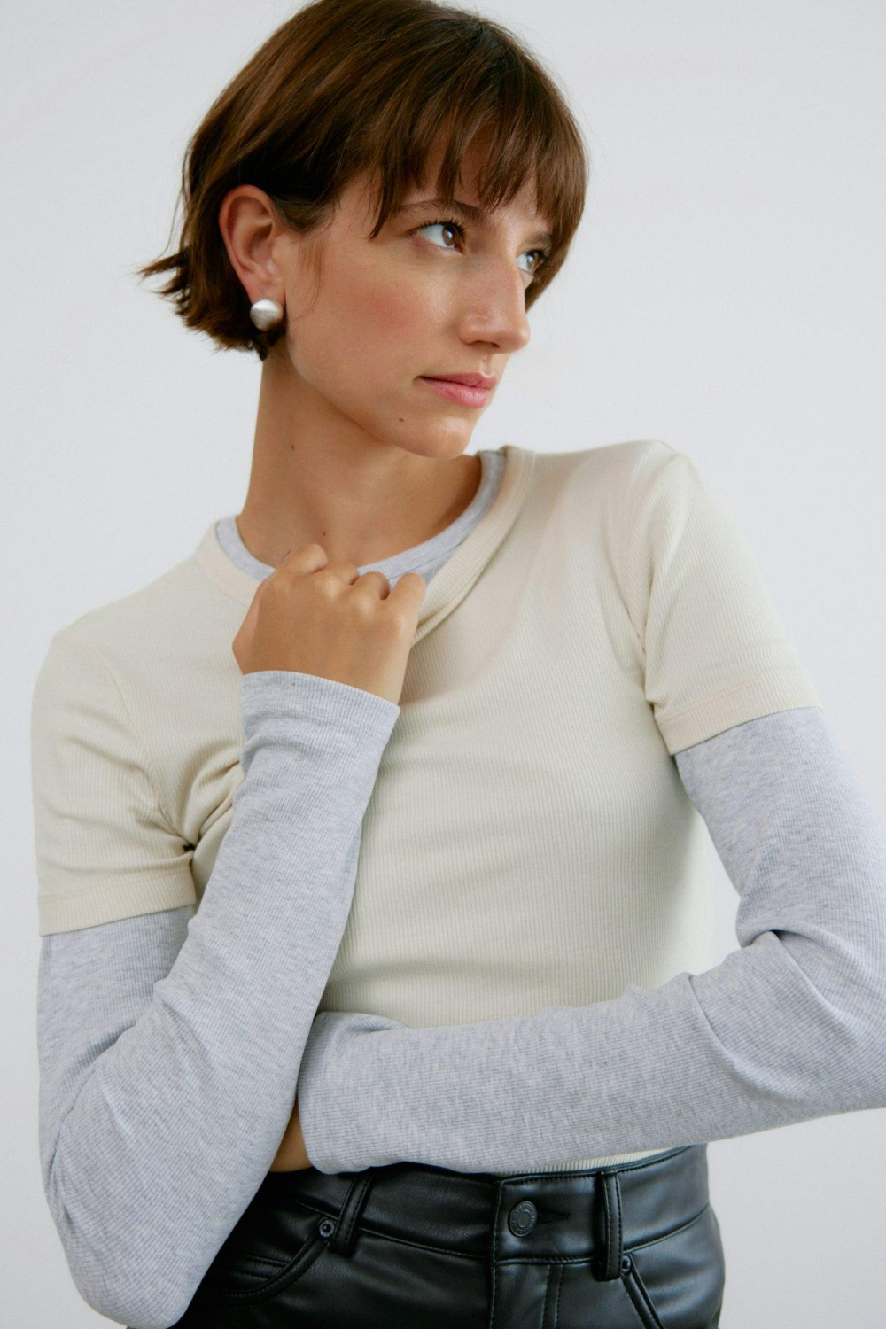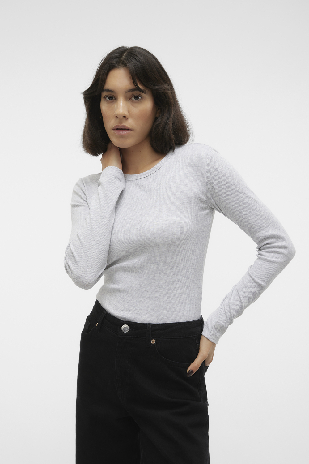 Dit comfortabele grijze dames T-shirt van Vero Moda is een veelzijdige aanvulling voor jouw garderobe. De gemêleerde stof, bestaande uit 95% katoen en 5% elastaan, zorgt voor een fijne pasvorm die zich comfortabel aan je lichaam aanpast. Met zijn regular fit en normale lengte is het T-shirt ideaal voor de herfstseizoen. Dankzij de lange mouwen en ronde hals krijg je een casual, maar toch stijlvolle look die je makkelijk kunt combineren met je favoriete jeans of een fijne rok. Dit Vero Moda T-shirt past perfect bij verschillende gelegenheden, van een ontspannen dag thuis tot een informele dag op kantoor. Het subtiele gemêleerde patroon voegt een vleugje textuur toe zonder dat het te opvallend is, wat het een uitstekende keuze maakt voor dagelijkse outfits. Of je nu een wandeling in het park maakt of een lunchafspraak hebt, dit T-shirt biedt je de nodige comfort en stijl zonder dat je concessies hoeft te doen aan je uitstraling.