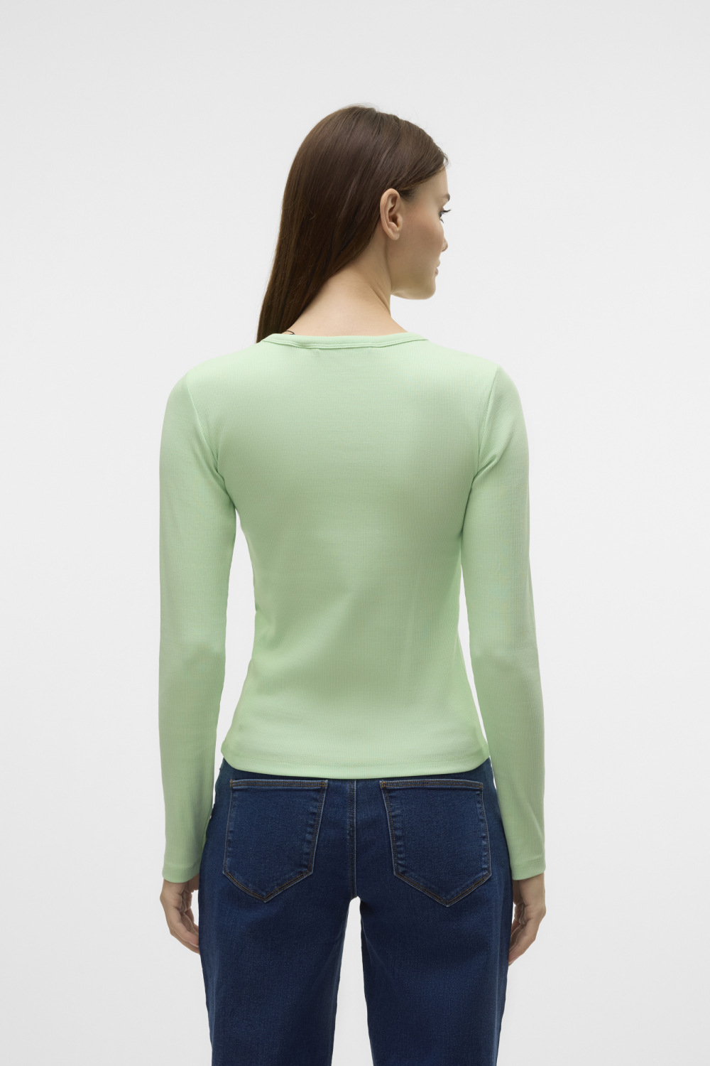 Dit pastelgroene dames T-shirt van Vero Moda is een ideale keuze voor een casual en stijlvolle look. Gemaakt van een zachte mix van 95% katoen en 5% elastaan, biedt dit ribpatroon T-shirt optimaal draagcomfort. De slim fit pasvorm en de ronde halslijn geven het een moderne uitstraling, perfect voor zowel een ontspannen dag thuis als een drukke dag in de stad. De lange mouwen maken het een veelzijdig item dat je gemakkelijk kunt combineren met andere stukken uit je garderobe.Dankzij zijn frisse kleur en tijdloze ontwerp past dit T-shirt moeiteloos bij zowel jeans als een rok. De normale lengte zorgt er bovendien voor dat het altijd goed valt, ongeacht hoe je het combineert. Of je het nu draagt naar een informele bijeenkomst of gewoon tijdens een wandeling door het park, dit Vero Moda T-shirt biedt je altijd de juiste mix van comfort en stijl.