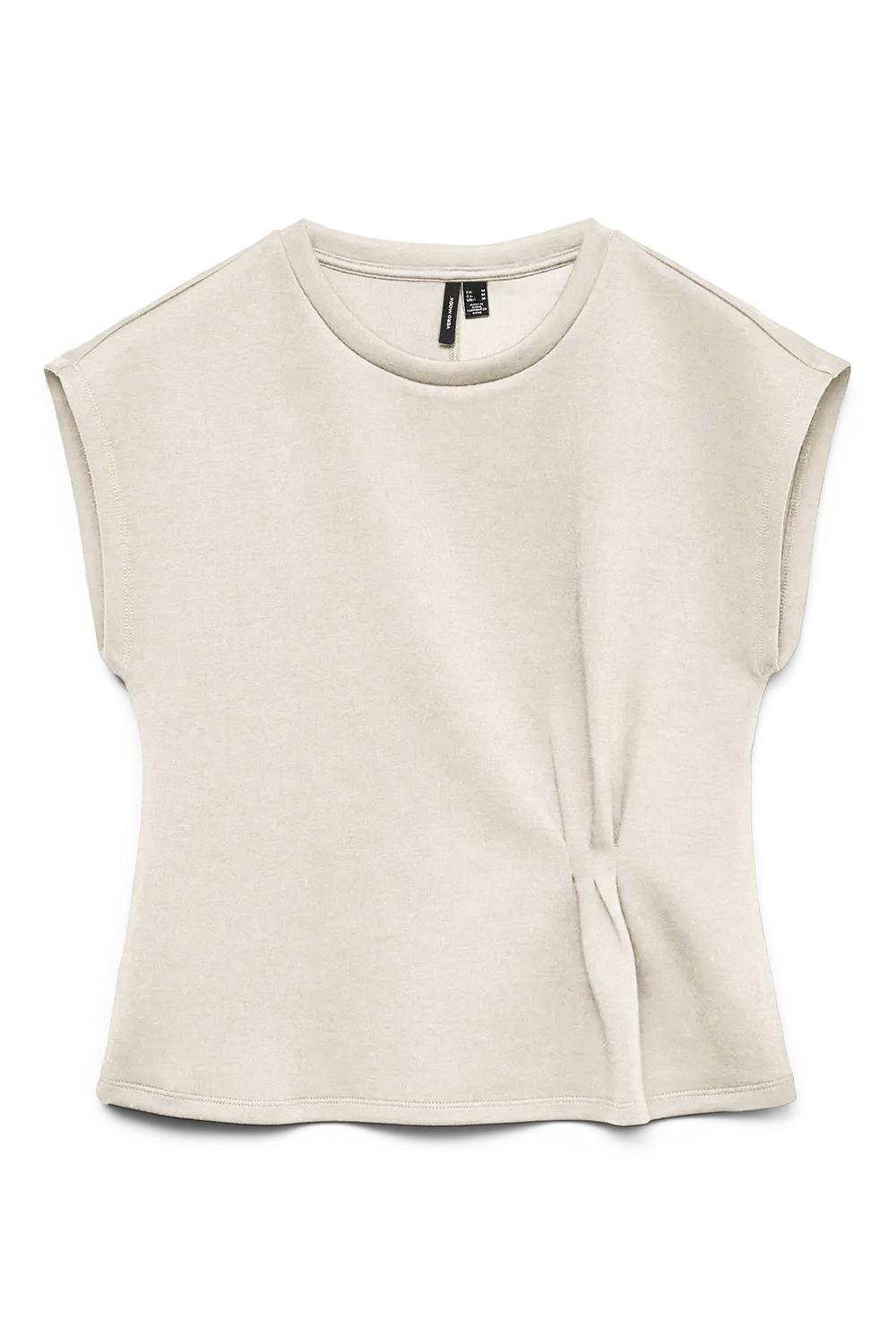 Dit Vero Moda T-shirt voor dames is uitgevoerd in een zachte oatmeal tint met een gemêleerd patroon. Het heeft een casual stijl die perfect aansluit bij de lente. De regular fit zorgt voor een comfortabele pasvorm, terwijl de ronde hals en kapmouwen een speelse twist geven aan het klassieke ontwerp. Dit T-shirt is ideaal voor dagelijkse outfits en biedt veelzijdigheid zonder in te boeten aan stijl of comfort. Het is makkelijk te combineren met zowel jeans als een elegante rok voor een relaxte maar toch verfijnde look. Met zijn duurzame eigenschappen is dit T-shirt niet alleen een stijlvolle keuze, maar ook een verantwoorde. De normale lengte maakt het geschikt voor diverse gelegenheden, van een ontspannen dag in het park tot een informele samenkomst met vrienden. Of je nu kiest voor een sportieve uitstraling of een casual chique look, dit Vero Moda T-shirt staat garant voor een vleugje elegantie in je dagelijkse garderobe.