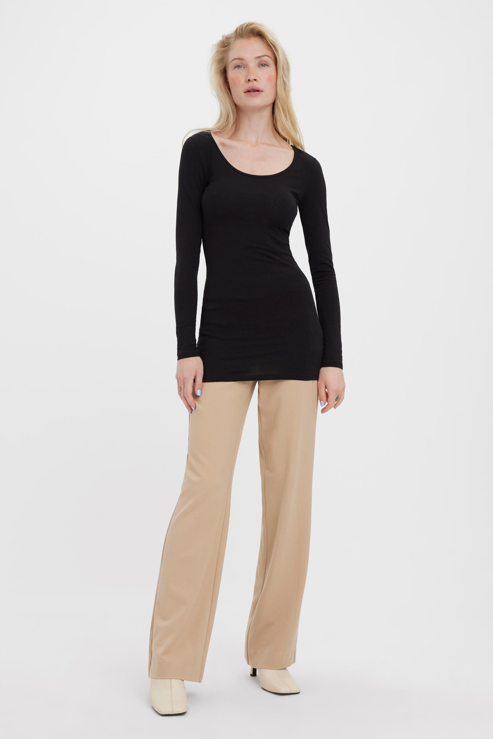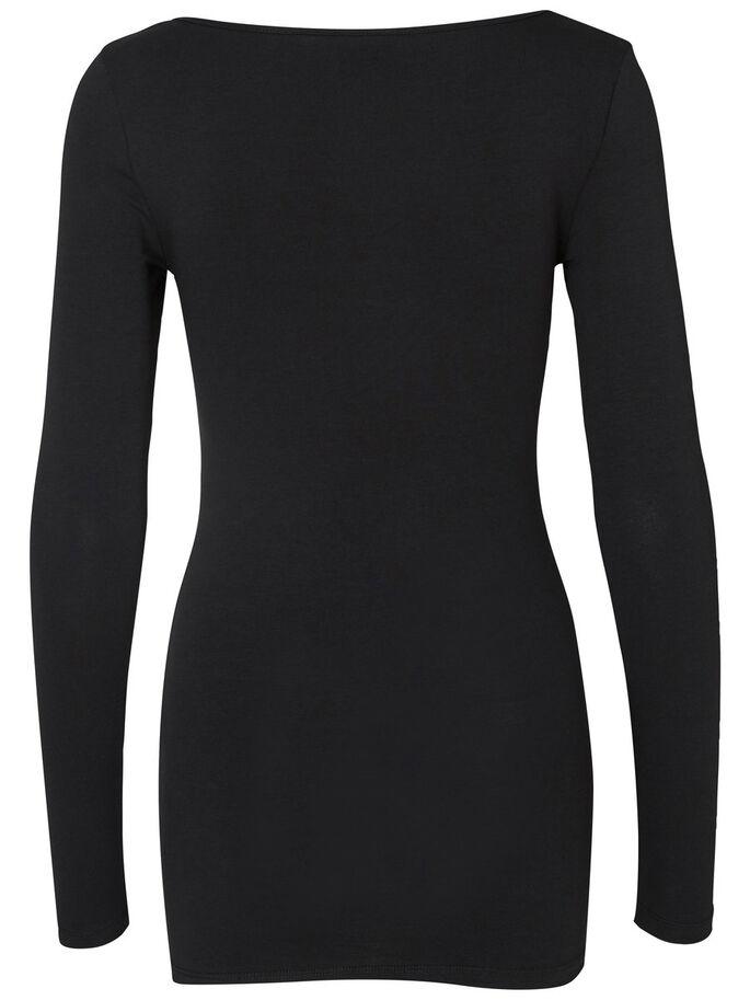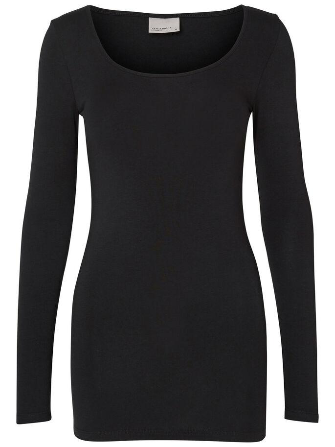 Lang, basic shirt van Vero Moda met diepe ronde hals en lange mouwen.