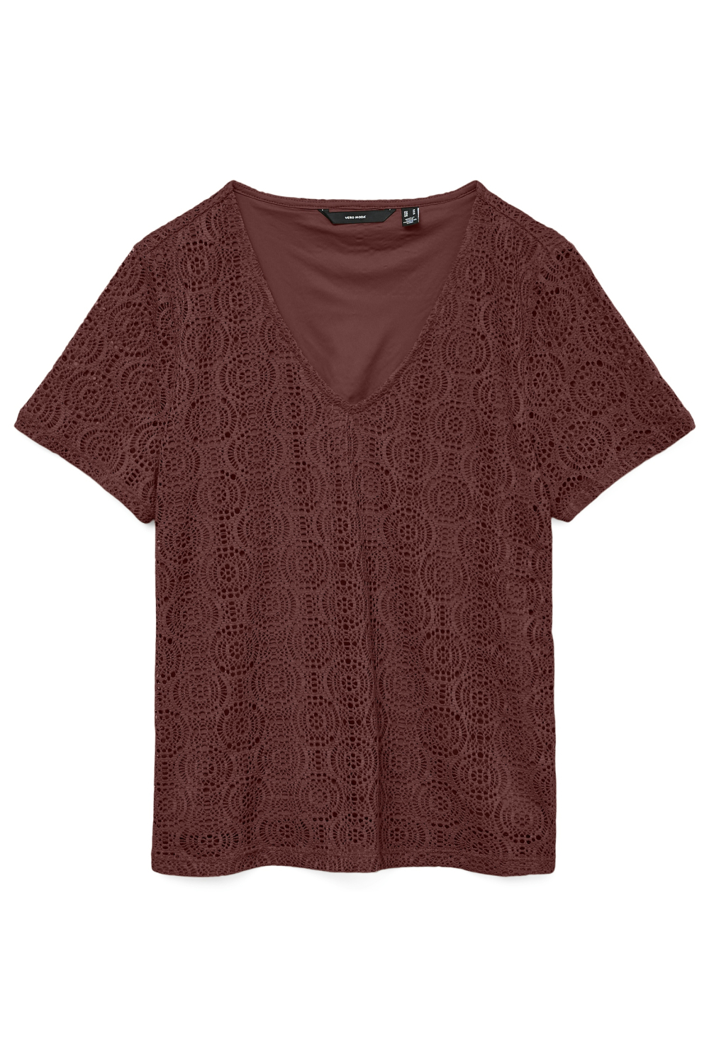 Dit elegante T-shirt van Vero Moda voor dames kenmerkt zich door een casual stijl met een verfijnde ajourpatroon. Het shirt is vervaardigd uit 95% polyester en 5% elastan, wat zorgt voor een comfortabele en flexibele pasvorm. De warme, bordeauxrode kleur gecombineerd met de V-hals geeft een moderne look die zowel trendy als tijdloos is. Perfect voor zomerse dagen dankzij de korte mouwen en de lichte, luchtige stof. De normale lengte maakt dit Vero Moda T-shirt veelzijdig te dragen, of je nu kiest voor een informele werkdag of een ontspannen middag in de stad. Combineer het met lichte broeken voor een frisse uitstraling, of draag het onder een vest als het wat frisser wordt. Dit T-shirt biedt een duurzaam en stijlvol kledingstuk dat makkelijk in je garderobe past, zonder aan comfort in te boeten.