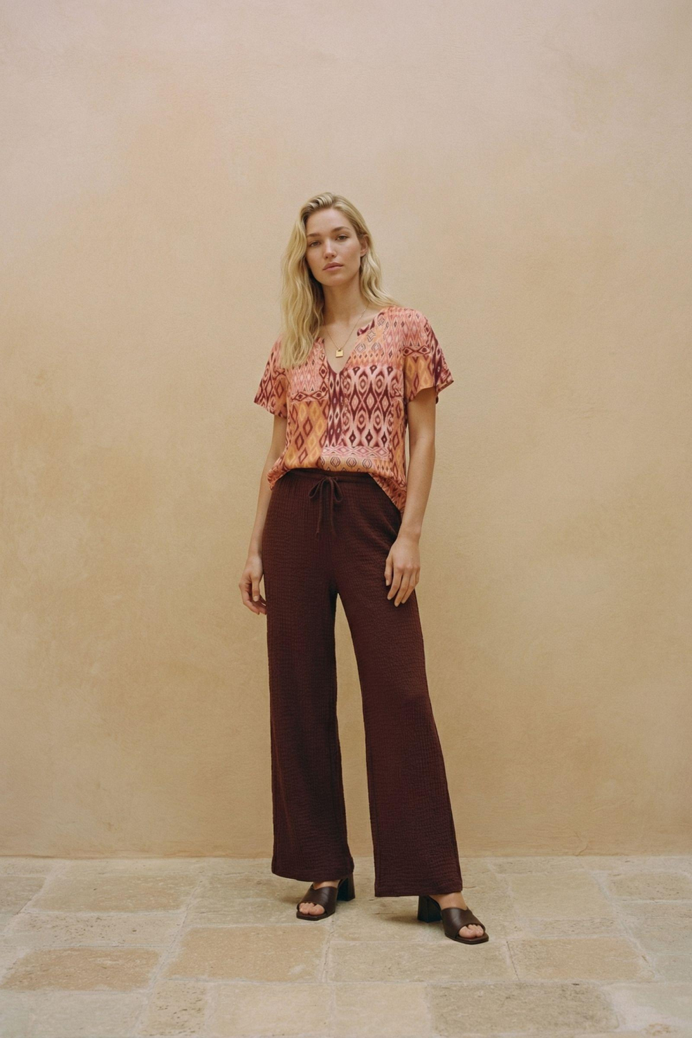 Dit kleurrijke dames T-shirt van Vero Moda is een echte blikvanger in je lentecollectie. Het shirt heeft een levendig grafisch patroon in warme tinten zoals oranje, roze en rood, en is voorzien van een ronde hals met een subtiele strikkoordsluiting. Dankzij de regular fit pasvorm biedt het veelzijdig comfort, ideaal voor casual gelegenheden. Gemaakt van 100% Viscose Lenzing Ecovero, voelt de stof zacht aan op je huid en draagt bij aan een bewuste keuze voor duurzaamheid. Met zijn korte mouwen en normale lengte is dit T-shirt perfect voor zonnige dagen. Door de opvallende print geef je elke outfit wat extra flair, of je nu een lunchdate hebt of een dagje in het park doorbrengt. Combineer het met een lichte jeans of een luchtige rok voor een moeiteloze en stijlvolle look. Dit stijlvolle Vero Moda T-shirt is een veelzijdig kledingstuk waarmee je in verschillende situaties goed voor de dag komt.