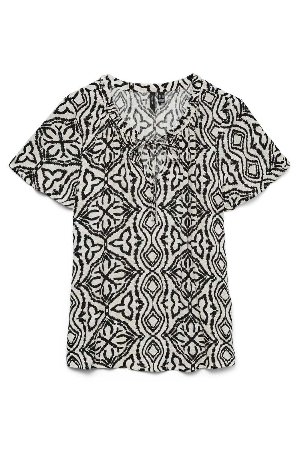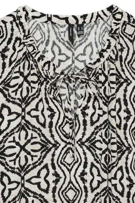 Dit grafische Vero Moda T-shirt voor dames is een veelzijdige aanvulling op je garderobe. Gemaakt van 100% viscose Lenzing Ecovero, biedt dit T-shirt niet alleen comfort maar ook een duurzame keuze voor de modebewuste vrouw. Het heeft een regular fit, waardoor het zowel casual als stijlvol oogt. De ronde hals en het opvallende zwart-witte patroon geven het shirt een vrolijke en toch elegante uitstraling. Perfect voor de lente, dit T-shirt met korte mouw is ideaal voor informele bijeenkomsten of een ontspannen dagje uit. De normale lengte zorgt ervoor dat het gemakkelijk te combineren is met zowel jeans als rokken. Dankzij de luchtige stof blijf je fris, ongeacht de temperatuur. Of je nu een wandeling maakt in het park of een koffieafspraak hebt, dit Vero Moda T-shirt biedt je een stijlvolle en comfortabele look.