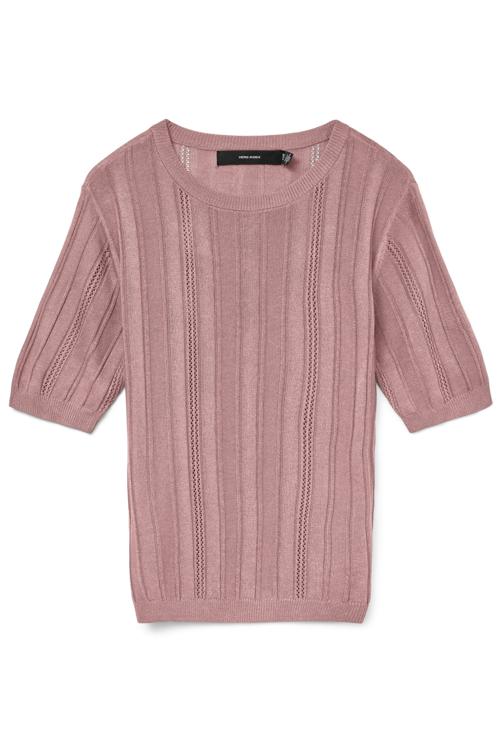Dit Vero Moda T-shirt uit de ROSE ELEGANCE collectie is een uitstekende keuze voor de zomergarderobe. Het is vervaardigd uit 100% viscose Tangcell, wat zorgt voor een lichte en ademende stof. Het ajourpatroon geeft het shirt een subtiele en stijlvolle uitstraling die bijdraagt aan een verfijnde look. De ronde hals en korte mouwen maken het een veelzijdig kledingstuk, dat comfortabel zit tijdens warme dagen. Met zijn regular fit en normale lengte biedt dit T-shirt van Vero Moda zowel comfort als stijl. De zachte roze tint maakt het eenvoudig te combineren met diverse outfits. Draag het met een lichte jeans voor een casual dagje uit of combineer het met een rok voor een meer geklede gelegenheid. Of je nu naar een ontspannen brunch gaat of een zomerse avondwandeling maakt, dit T-shirt voegt een elegante touch toe aan je outfit.