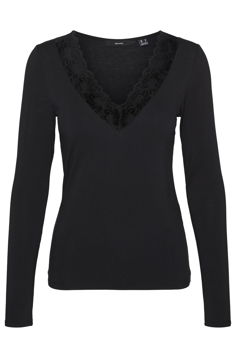 Dit zwarte dames T-shirt van Vero Moda combineert elegantie en comfort met zijn verfijnde ontwerp en zachte stof. Gemaakt van 95% viscose en 5% elastan, biedt het een aangename pasvorm die aansluit bij jouw silhouet. De V-hals is prachtig afgewerkt met kant, wat een subtiele en stijlvolle touch toevoegt aan je outfit. Perfect voor een casual gelegenheid in het najaar wanneer je zowel warm als modieus gekleed wilt zijn.