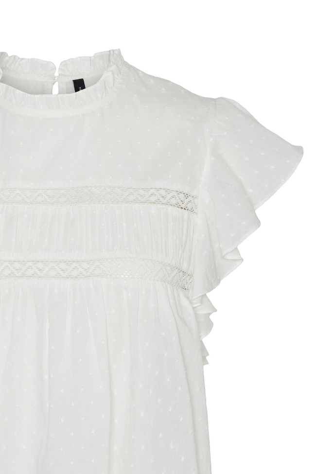 Dit luchtige snow white T-shirt van Vero Moda biedt een casual en vrouwelijke uitstraling die je garderobe verrijkt. Gemaakt van 100% katoen, staat comfort voorop terwijl de fijne structuur en ronde hals een subtiele elegantie toevoegen. De kapmouwen en de speelse ruches geven dit T-shirt een charmante touch, ideaal voor de lente. Of je nu een dagje in de stad doorbrengt of een ontspannen middag met vrienden hebt, dit shirt past perfect. De regular pasvorm van dit Vero Moda T-shirt zorgt voor een aangenaam draagcomfort en de katoenen stof maakt het ook nog eens ademend, ideaal voor warmere dagen. De schattige details zoals de geplooide stof en de opengewerkte randen maken het een veelzijdig stuk voor je casual outfits. Combineer het moeiteloos met een jeans of een lichte rok om je look compleet te maken voor diverse gelegenheden, van een middagje shoppen tot een informele lunch.