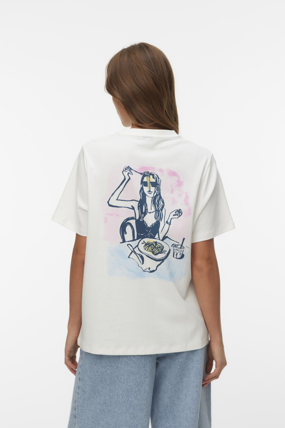 Dit Vero Moda T-shirt voor dames biedt een casual stijl die perfect past bij een dagelijkse garderobe. Gemaakt van 100% biologisch katoen, voel je je goed over zowel je stijl als je keuze voor duurzaamheid. Het T-shirt heeft een regular fit en een ronde hals die zorgt voor een ontspannen en comfortabele uitstraling. Op de achterkant vind je een opvallende grafische print in zachte kleuren, die een speelse touch toevoegt aan je outfit. Het T-shirt is ideaal voor de lente en biedt veelzijdigheid voor verschillende gelegenheden. Draag het met een jeans voor een casual dagje uit, of combineer het met een korte rok voor een luchtige look tijdens warmere dagen. De korte mouwen en normale lengte maken dit T-shirt perfect voor een relaxte dag, of je nu een wandeling maakt in het park of met vrienden afspreekt. Met dit T-shirt kun je je stijl moeiteloos en bewust uitdrukken.