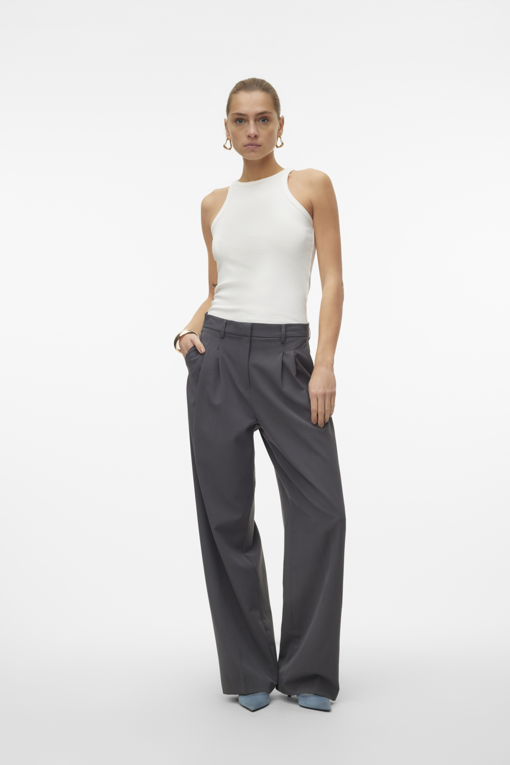 Deze casual snow white top van Vero Moda is een veelzijdige toevoeging aan je garderobe. Gemaakt van een zachte mix van 95% katoen en 5% elastan, biedt deze mouwloze top een comfortabel gevoel. De ribstof voegt een subtiele textuur toe aan het ontwerp, terwijl de ronde halslijn zorgt voor een klassieke uitstraling. Met een regular fit past deze top perfect bij verschillende lichaamstypes, en is het een ideale keuze voor warme dagen of als laagje onder een jasje. Dankzij het tijdloze ontwerp van deze Vero Moda top kun je gemakkelijk diverse outfits creëren. Combineer het met een nette pantalon voor een zakelijke look, of draag het met een jeans voor een ontspannen dagje uit. De normale lengte maakt het eenvoudig om in of over een broek te dragen, afhankelijk van je stijl. Met de nadruk op duurzaam materiaal is deze top niet alleen stijlvol maar ook een bewuste keuze voor je kledingkast. Of je nu naar kantoor gaat of een casual lunch hebt, deze top past altijd bij de gelegenheid.