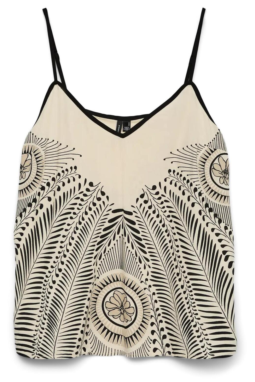 Deze casual top van Vero Moda is een perfecte toevoeging aan je zomergarderobe. Gemaakt van 100% viscose Livaeco van Birla Cellulose, biedt het een lichte en ademende stof, ideaal voor warme dagen. De opvallende grafische print in zwart-wit trekt direct de aandacht en geeft een stijlvolle uitstraling zonder te overdrijven. Met de V-hals en spaghettibandjes krijgt deze top een vrouwelijke en elegante uitstraling, perfect voor een dagje uit of een casual diner. Met zijn regular fit en normale lengte, kun je deze Vero Moda top gemakkelijk combineren met een jeans of een rok voor een relaxte look. De duurzame materiaalsamenstelling maakt het niet alleen een modebewuste, maar ook een milieubewuste keuze. Of je nu een wandeling langs het strand maakt of terrasje pakt in de stad, deze top is een veelzijdige aanvulling die zich aanpast aan elke zomerse gelegenheid.