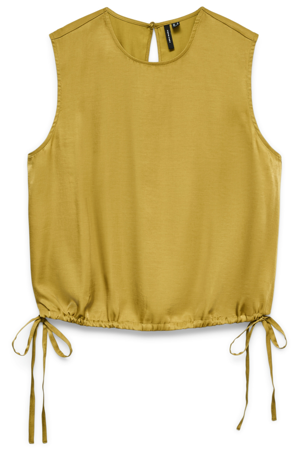Deze elegante Vero Moda top is een perfecte keuze voor de moderne vrouw. Met zijn glanzende patroon straalt de top verfijning uit, ideaal voor warme zomerdagen. De regular fit en de mouwloze uitvoering zorgen voor een luchtig en comfortabel gevoel, terwijl de stijlvolle ronde hals een tijdloze touch toevoegt aan je outfit. De subtiele strikdetails aan de zijkanten geven een speelse draai aan het ontwerp, waardoor het zowel geschikt is voor een casual dagje uit als een ontspannen avondje met vrienden. De Vero Moda top is veelzijdig en eenvoudig te combineren met verschillende kledingstukken. Draag hem op een lichte denim jeans voor een casual look, of combineer hem met een rok voor een meer elegante uitstraling. De normale lengte maakt het een praktische keuze voor diverse gelegenheden. Deze top is niet alleen een stijlvolle aanvulling op je zomergarderobe, maar ook een duurzame keuze die bijdraagt aan een verantwoorde modewereld.