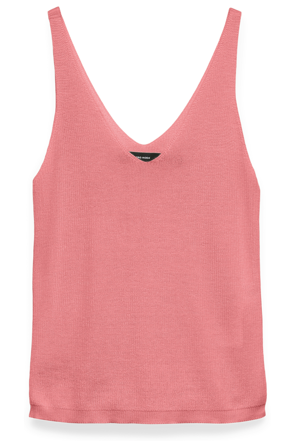 Deze elegante Vero Moda top in de kleur Coral Paradise brengt een frisse uitstraling naar jouw collectie knitwear. De zachte, gemêleerde stof voelt comfortabel aan en de regular pasvorm zorgt ervoor dat je je altijd prettig voelt. De V-hals aan zowel de voor- als achterkant geeft het mouwloze ontwerp een subtiele, vrouwelijke touch. Ideaal om te dragen tijdens zonnige dagen of casual uitstapjes. De Vero Moda top is eenvoudig te combineren met verschillende stijlen. Draag hem met een jeans voor een relaxte look of combineer hem met een rok voor een meer verfijnd voorkomen. Door zijn normale lengte en veelzijdige stijl past deze top bij verschillende gelegenheden, van een informele lunch tot een middagje winkelen. Voeg deze veelzijdige top toe aan je garderobe voor een tijdloze, stijlvolle keuze.