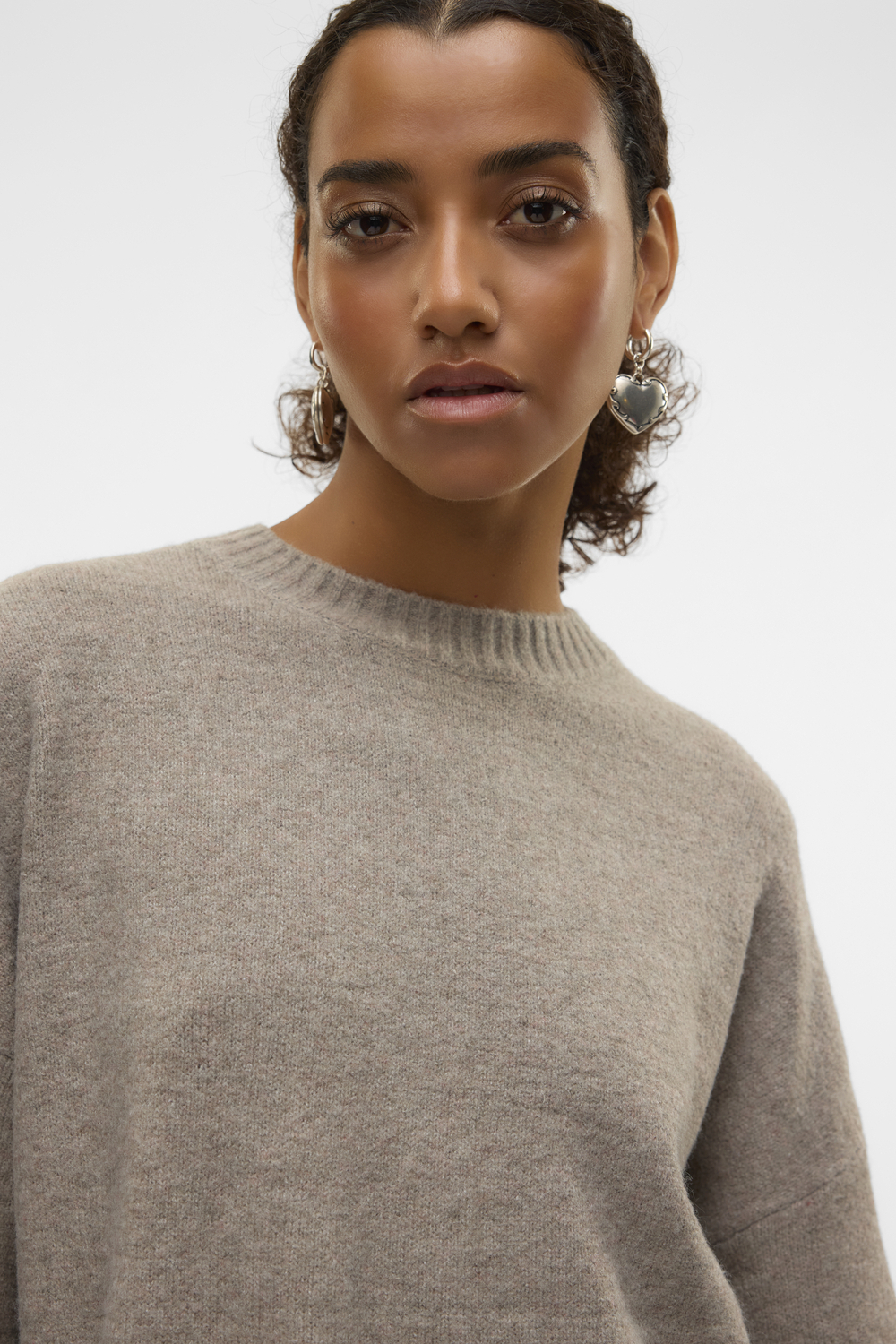 Deze Vero Moda trui in de kleur MOON ROCK/MELANGE is een perfecte aanvulling voor je basisgarderobe. Met zijn gemêleerde patroon en ronde hals creëer je een moeiteloos stijlvolle look. De oversized pasvorm zorgt voor extra comfort, terwijl de lange mouwen je warm houden tijdens koelere dagen. De trui heeft een normale lengte die ideaal is voor een ontspannen, maar toch moderne uitstraling. Deze knitwear is ontworpen met oog voor detail en straalt duurzaamheid uit, waardoor je een bewuste keuze maakt. Of je nu een casual dagje uit plant of een comfortabele outfit voor thuis zoekt, deze Vero Moda trui biedt veelzijdigheid. Draag hem met een strakke jeans voor een balans tussen relaxed en chic, of combineer hem met een rok voor een vrouwelijke twist. Dankzij de neutrale kleur past hij gemakkelijk bij verschillende stijlen, waardoor je eindeloos kunt variëren. Deze trui is een betrouwbare keuze voor een stijlvolle, nonchalante look elke keer dat je hem aantrekt.