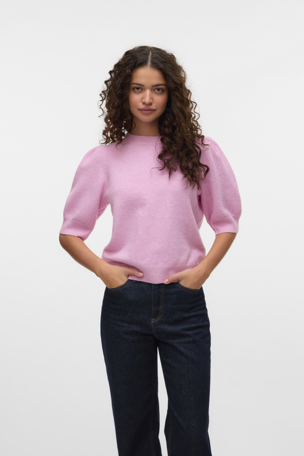 Deze gemêleerde trui van Vero Moda biedt een ideale mix van comfort en stijl. De trui heeft een zachte, bonbonkleurige tint die opvalt zonder te overheersen, perfect voor zowel casual als meer formele gelegenheden. Met een regular fit en een ronde hals, is deze trui veelzijdig en makkelijk te combineren met diverse outfits. De korte mouwen met subtiele pofdetails geven een speelse twist aan het klassieke ontwerp, terwijl de gebreide structuur zorgt voor een luxueuze uitstraling. Deze Vero Moda trui is een uitstekende keuze voor de lente, wanneer de dagen warmer worden maar een lichte extra laag nog steeds aangenaam is. De normale lengte maakt hem geschikt om zowel over een rok als een broek te dragen. De duurzame materialen waaruit de trui is vervaardigd, zorgen ervoor dat je hem keer op keer met plezier kunt dragen. Of je nu een dag op kantoor bent of een ontspannen weekendje weg plant, deze trui voegt net dat beetje extra toe aan je look.