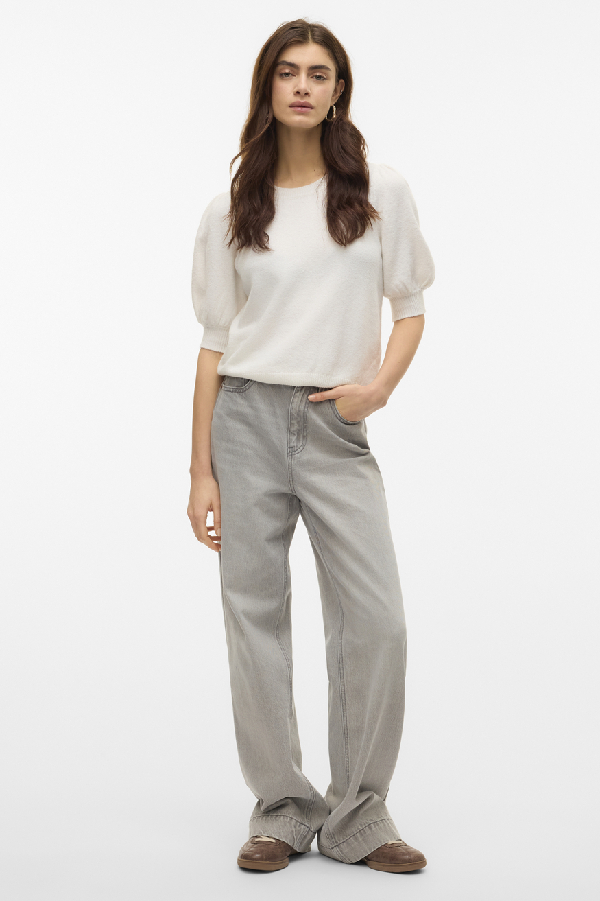 Deze verfijnde snow white melange trui van Vero Moda is een stijlvolle keuze voor jouw lentegarderobe. Gemaakt van een zachte mix van polyester, elastaan en polyamide, biedt deze trui een comfortabel draaggevoel. De trui heeft een regular fit en is voorzien van een ronde hals, wat zorgt voor een klassieke uitstraling. De korte mouwen met lichte volumineuze plooien geven de trui een moderne touch, waardoor hij zich onderscheidt in elke kledingkast. Deze Vero Moda trui is veelzijdig en gemakkelijk te combineren met verschillende outfits. Perfect voor casual dagen, maar ook geschikt voor informele gelegenheden. Draag hem met een lichte jeans en sneakers voor een relaxte look of combineer met een kokerrok voor een wat meer klassieke uitstraling. De normale lengte maakt het een ideaal laagje voor wisselvallige lentedagen. Voeg deze trui toe aan je garderobe en ervaar het gemak van stijlvolle veelzijdigheid.