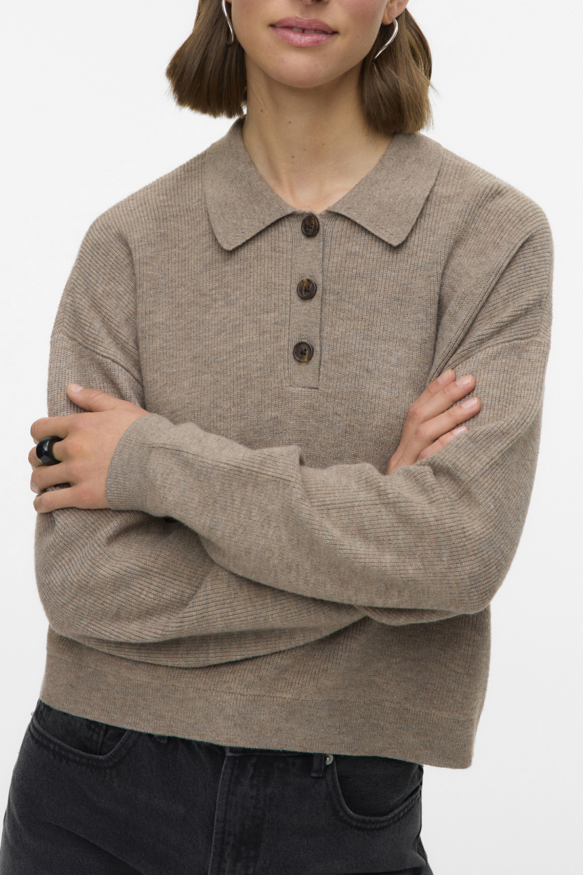Deze Vero Moda trui in de kleur Silver Mink/MELANGE is een stijlvolle keuze voor de winter. Met een regular fit en gemaakt van comfortabele knitwear, biedt deze damestrui zowel warmte als bewegingsvrijheid. De gemêleerde look geeft een subtiele speelsheid aan het ontwerp, terwijl de ribkraag met knoopsluiting een verfijnd accent toevoegt. De lange mouwen en de normale lengte zorgen ervoor dat je hem moeiteloos kunt combineren met jouw favoriete jeans of rok voor een casual outfit. Dankzij het tijdloze ontwerp is deze Vero Moda trui een veelzijdige aanvulling op elke garderobe. Hij is perfect voor verschillende gelegenheden, zoals een informele werkdag of een ontspannen weekend. De trui is duurzaam geproduceerd en biedt een stijlvolle uitstraling zonder in te boeten op comfort. Of je nu een frisse wandeling maakt of binnen blijft met een goed boek, deze trui houdt je warm en modieus. Voeg deze handige en stijlvolle trui toe aan jouw wintercollectie en geniet van het draagcomfort.