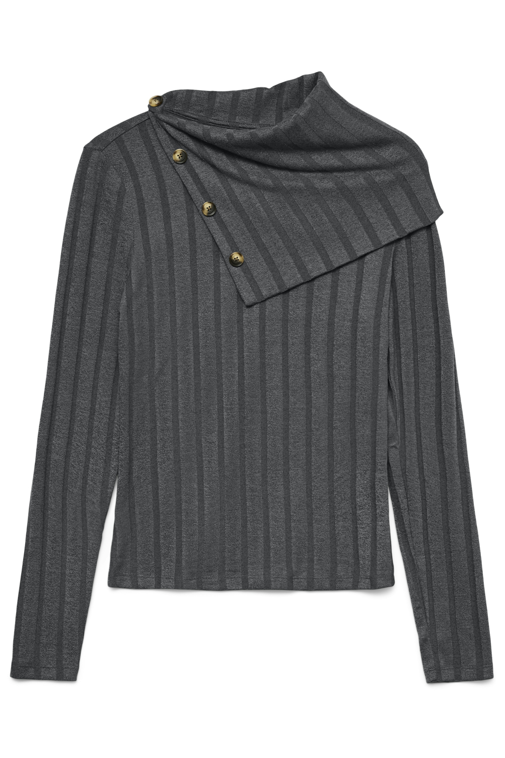 Dit casual T-shirt van Vero Moda is gemaakt van gerecycled polyester en elastaan, en biedt een comfortabele regular fit. De stof heeft een subtiele structuur in de kleur Asphalt, wat het net dat beetje extra geeft zonder opdringerig te zijn. De colkraag met knoopsluiting zorgt voor een unieke twist, terwijl de lange mouwen het perfect maken voor het herfstseizoen. Met zijn veelzijdige design is dit T-shirt een uitstekende keuze voor casual gelegenheden. Combineer het met je favoriete jeans voor een ontspannen weekendlook of draag het met een rok voor een speels effect. De normale lengte maakt het makkelijk om te stylen met zowel hoge als lage broeken. Kies voor dit duurzame T-shirt en voeg een stijlvolle, comfortabele optie toe aan je collectie.