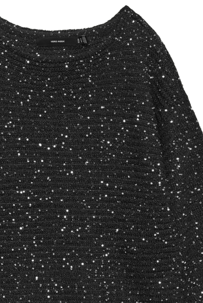 Deze elegante zwarte trui van Vero Moda, verrijkt met subtiele zilveren pailletten, is perfect voor de wintermaanden. De regular fit en de ronde halslijn zorgen voor een comfortabele pasvorm die elke dag gedragen kan worden. Dankzij de lange mouwen blijf je heerlijk warm, terwijl het zachte breisel gegarandeerd voor stijl en comfort zorgt. Of je nu op zoek bent naar iets voor op kantoor of een avondje uit, deze trui biedt de perfecte balans tussen casual en chic. De trui valt normaal in lengte en is eenvoudig te combineren met zowel een nette broek als een casual jeans. De pailletten geven een luxe touch aan je look, zonder te overheersen. De veelzijdigheid van deze knitwear is ideaal voor verschillende gelegenheden, of je nu naar een ontspannen lunch met vrienden gaat of een avondje uit plant. Met dit item van Vero Moda voeg je een duurzaam en stijlvol element toe aan je wintergarderobe.