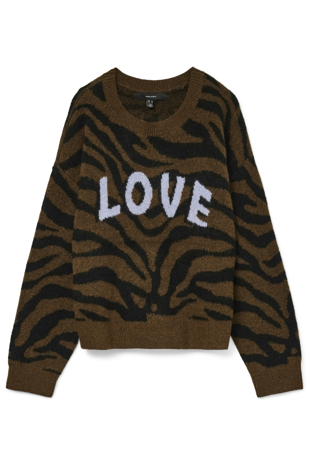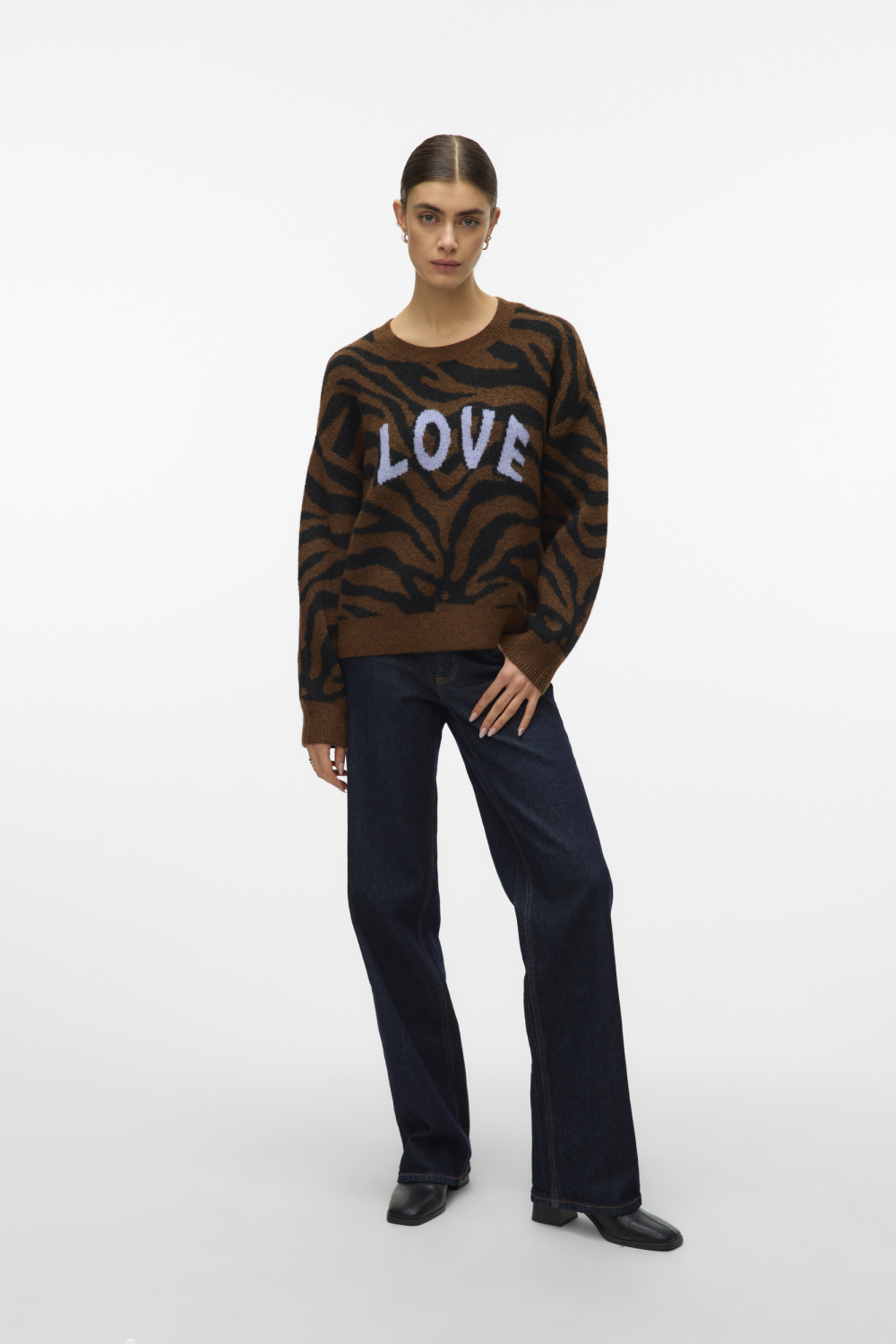 Deze trendy trui van Vero Moda is een uitstekende aanvulling op je herfstgarderobe. Met zijn unieke bruine en zwarte patroon in dierenprint en de opvallende 'LOVE'-tekst op de borst, voegt deze trui een speelse touch toe aan je casual look. De trui heeft een regular fit, waardoor hij comfortabel en stijlvol is voor dagelijks gebruik. De ronde hals en lange mouwen maken het een veelzijdig kledingstuk, geschikt voor allerlei gelegenheden. Gemaakt van een zachte en duurzame stof, biedt deze trui niet alleen comfort maar ook een milieuvriendelijke keuze. De normale lengte zorgt ervoor dat het makkelijk te combineren is met zowel jeans als een casual rok. Perfect voor een gezellige dag in het park of een ontspannen middagje shoppen. Dankzij het stijlvolle design kun je deze Vero Moda trui probleemloos combineren met je favoriete accessoires voor een complete look.