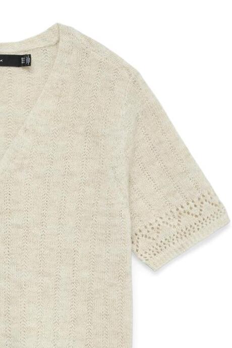Dit verfijnde vest van Vero Moda, onderdeel van hun Knitwear collectie, is een veelzijdige aanvulling voor jouw garderobe. Met een regular fit en een elegante V-hals biedt het vest een comfortabele pasvorm die geschikt is voor dagelijks gebruik. De ajour details aan de randen geven het vest een subtiele textuur en esthetiek, perfect voor de lente. De knoopsluiting zorgt voor een praktische en stijlvolle afwerking, waarbij de korte mouwen en normale lengte garant staan voor een ontspannen en casual uitstraling. Gemaakt voor dames die op zoek zijn naar een stijlvolle, maar toch toegankelijke outfit. Dit vest is ideaal om te dragen tijdens informele werkbijeenkomsten of een gezellig dagje uit. Combineer het met een lichte broek of jeans voor een moeiteloos chique look. Met zijn tijdloze design en neutrale kleur kan dit Vero Moda vest gemakkelijk worden geïntegreerd in verschillende stijlen en gelegenheden, waardoor je er op elk moment van de dag verzorgd uitziet zonder in te boeten aan comfort.