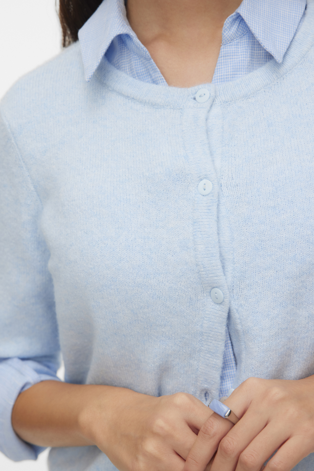 Dit casual damesvest van Vero Moda in de kleur Cashmere Blue/Melange is een veelzijdige toevoeging aan je lentegarderobe. Met zijn gemêleerde patroon en ronde hals voegt dit vest een zachte, frisse uitstraling toe aan je outfit. Het vest heeft een regular fit en is afgewerkt met een rij knopen, waardoor het gemakkelijk aan te passen is aan verschillende stijlen en gelegenheden. De korte mouwen maken het ideaal voor de mildere dagen van het seizoen. Dit Vero Moda vest is perfect voor zowel alledaagse als meer geklede situaties. Combineer het met een blouse en een nette rok voor een zakelijke look, of draag het losjes over een casual jeans voor een ontspannen dagje uit. De normale lengte en het verfijnde ontwerp zorgen dat je er altijd verzorgd uitziet, of je nu een dag op kantoor hebt of een koffieafspraak met vrienden. Dit item is een mooie match voor iedere situatie.