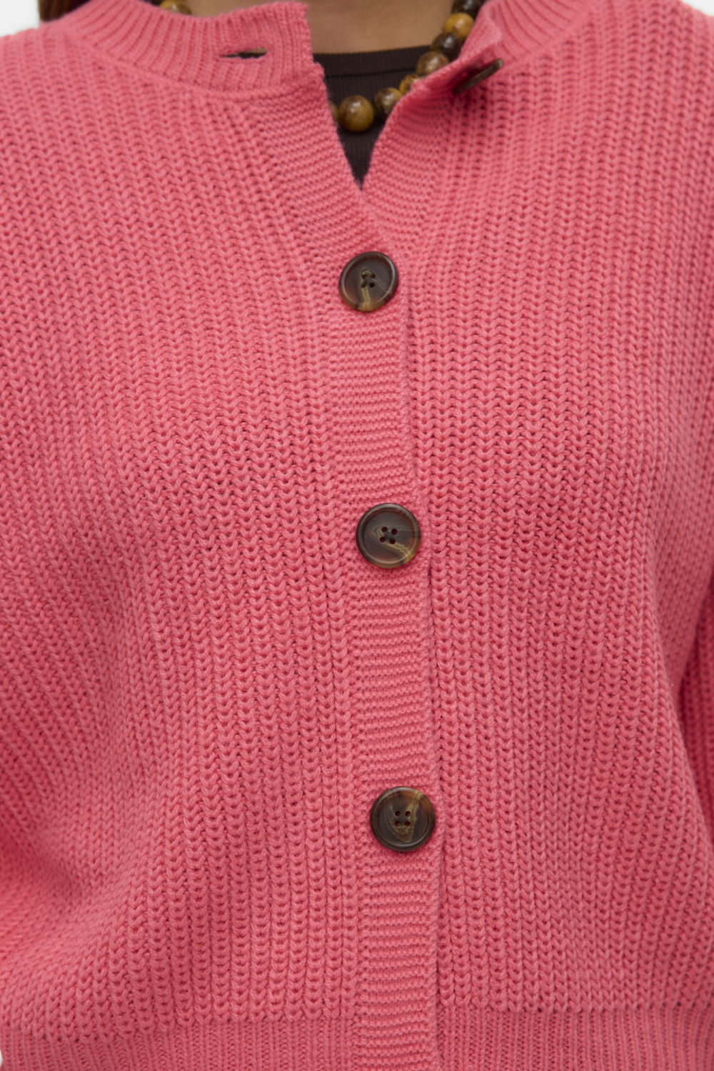 Dit Vero Moda vest in de kleur Coral Paradise voegt een vleugje kleur toe aan je wintergarderobe. Het vest heeft een regular pasvorm en is gemaakt van 100% acryl, wat zorgt voor een comfortabele en warme ervaring. De ronde hals en de grote knopen aan de voorkant geven het vest een klassieke uitstraling, perfect voor zowel informele als zakelijke omgevingen. De gestructureerde knitwear-stijl biedt niet alleen extra warmte, maar voegt ook een subtiel detail toe aan het geheel.