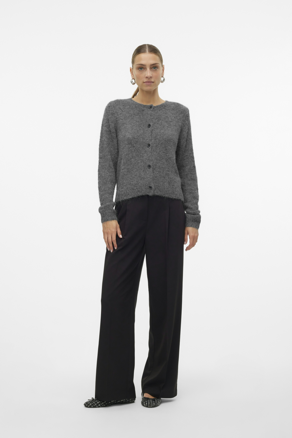 Dit grijze damesvest van Vero Moda valt op door zijn verfijnde gemêleerde patroon en zachte textuur, perfect voor zowel casual als semi-formele settings. De regular fit en ronde halslijn zorgen voor een klassieke en tijdloze uitstraling, terwijl de subtiele knoopsluiting je outfit een elegante afwerking geeft. Met zijn normale lengte en lange mouwen biedt dit vest zowel comfort als stijl, en is het een veelzijdige aanvulling op je dagelijkse garderobe. Gemaakt van duurzaam breiwerk, is dit vest geschikt voor elk seizoen, ideaal om laagjes te creëren tijdens kille dagen of als lichtgewicht bovenlaag in warmere maanden. Het medium gray melange is makkelijk te combineren met jeans voor een relaxte look of met een rok voor een meer geraffineerde stijl. Of je nu een dagje uit plant of een informele zakelijke bijeenkomst, dit Vero Moda vest past zich moeiteloos aan verschillende gelegenheden aan.