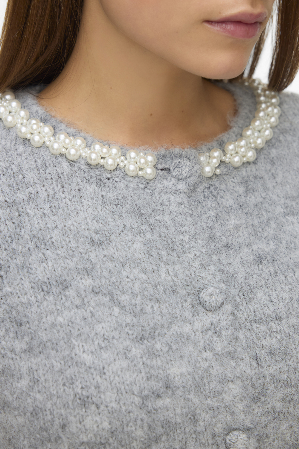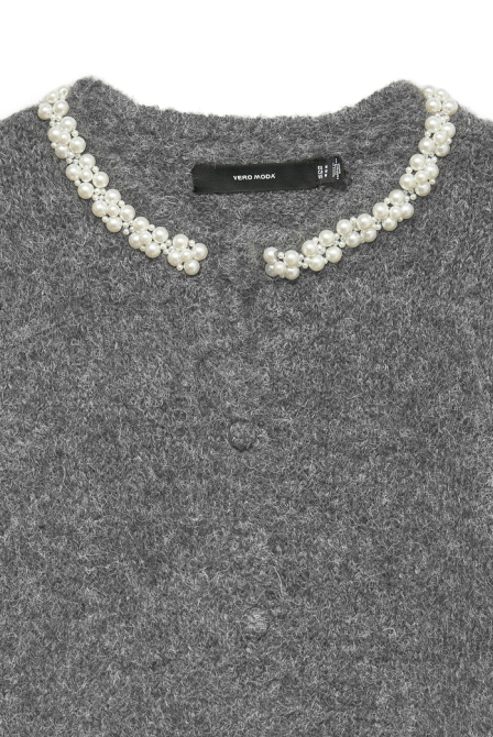 Dit elegante vest van Vero Moda in de kleur medium grey melange is een veelzijdige aanvulling op je garderobe voor de winter. Met zijn regular fit pasvorm biedt het comfort en stijl, perfect afgestemd op de hedendaagse vrouw. Het vest is vervaardigd in een knitwear-stijl die warm en zacht aanvoelt. De opvallende pareldetails langs de ronde hals geven het geheel een verfijnde uitstraling, ideaal voor zowel casual als formele gelegenheden. De knoopsluiting en korte mouwen maken dit vest een praktische keuze voor verschillende weersomstandigheden. Dankzij de normale lengte is het eenvoudig te combineren met andere kledingstukken. Draag het bijvoorbeeld over een blouse voor een dag op kantoor, of stijl het met een jeans voor een ontspannen dagje uit. Dit Vero Moda vest is niet alleen aantrekkelijk, maar ook een bewuste keuze vanwege de duurzame productiekenmerken. Voeg een vleugje verfijning aan je dagelijkse look toe met dit charmante vest.