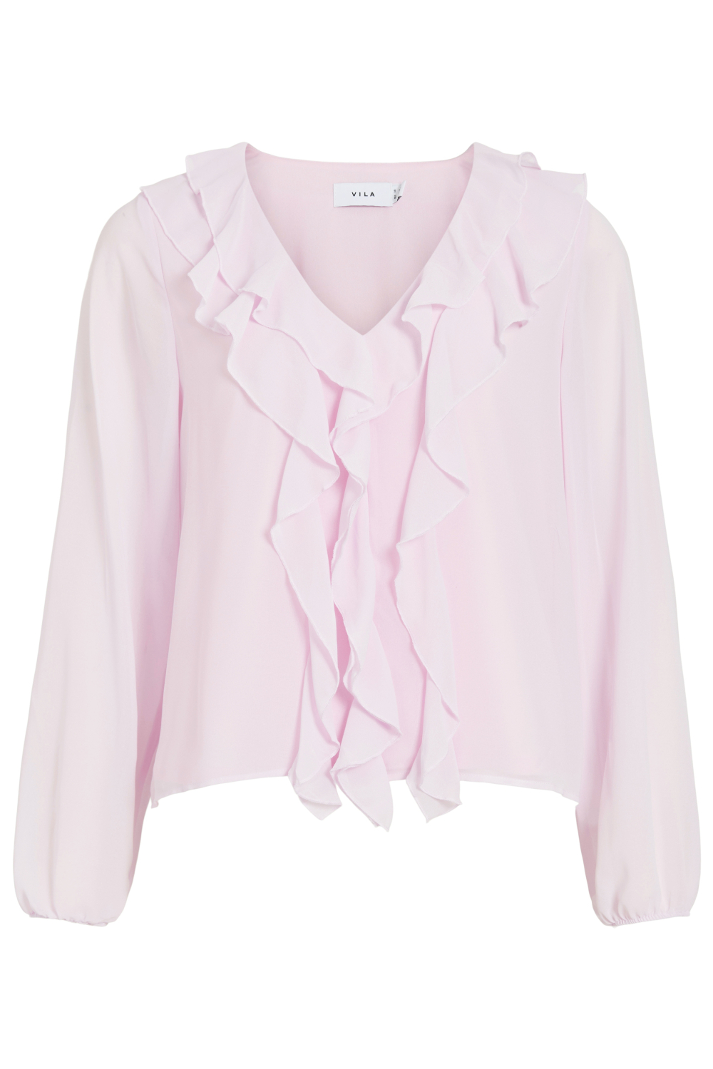 Deze prachtige roze blouse van Vila is een stijlvolle toevoeging aan je casual garderobe. De blouse heeft een regular fit en is gemaakt van een duurzame mix van 56% gerecycled polyester en 44% polyester, waardoor het een bewuste keuze is. Met de zachte ruches langs de V-hals en de voorzijde straal je zowel elegantie als eenvoud uit. De lange mouwen en normale lengte maken deze blouse geschikt voor zowel een dag op kantoor als een ontspannen weekenduitje. Combineer hem met een nette pantalon voor een verfijnde look of met een jeans voor een casual touch.