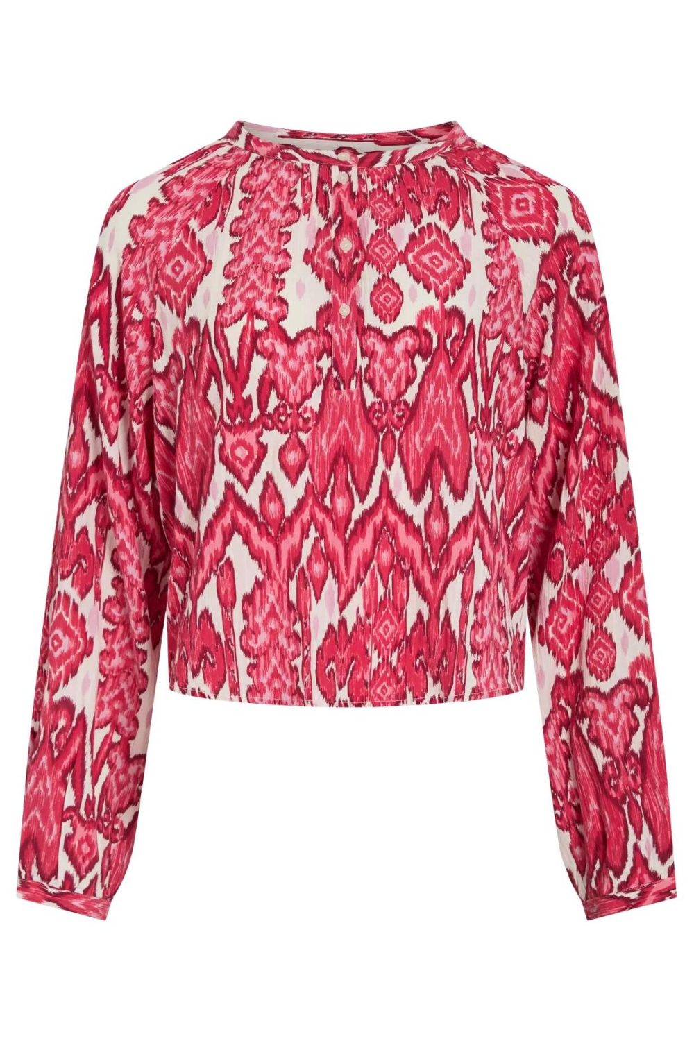 Deze casual blouse van Vila is een veelzijdige aanvulling op je lente garderobe. De blouse heeft een opvallend grafisch patroon in rood en wit dat je look direct een frisse en moderne twist geeft. De ronde hals en de knoopsluiting zorgen voor een ontspannen pasvorm, terwijl de 100% viscose Livaeco stof comfortabel draagt en duurzaam is geproduceerd. De lange mouwen maken het geschikt voor koelere lentedagen en bieden een luchtige uitstraling. Dankzij de korte lengte is deze blouse van Vila perfect te combineren met een hoge jeans of rok, ideaal voor een dagje uit of een informele bijeenkomst. Of je nu een lunchafspraak hebt of een wandeling maakt in de stad, deze blouse past zich moeiteloos aan je outfits aan. De regular pasvorm zorgt voor bewegingsvrijheid zonder in te boeten op stijl, wat het een praktische keuze maakt voor dagelijks gebruik.