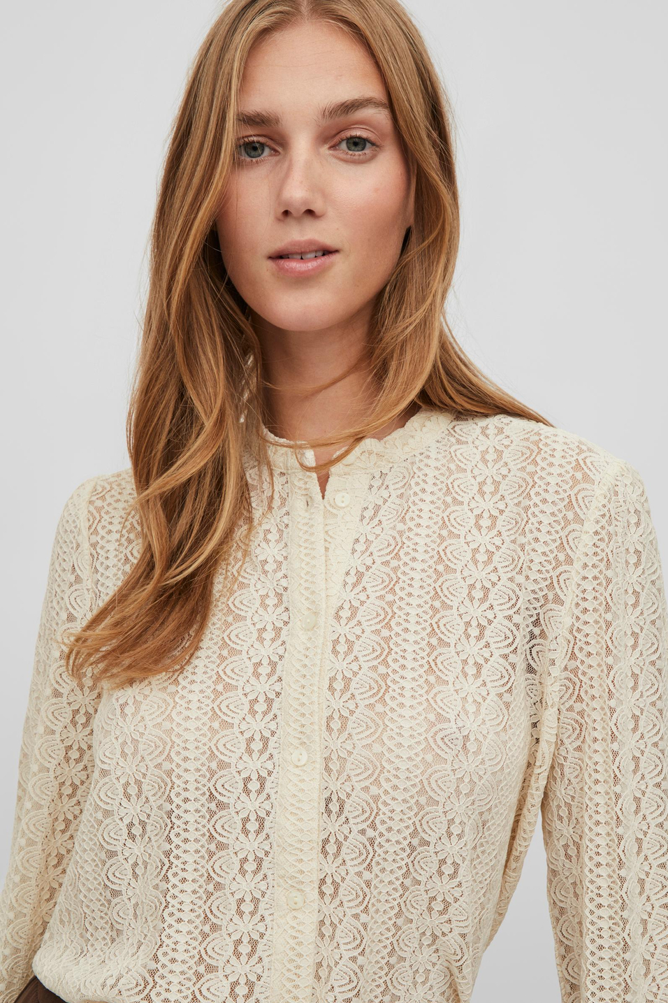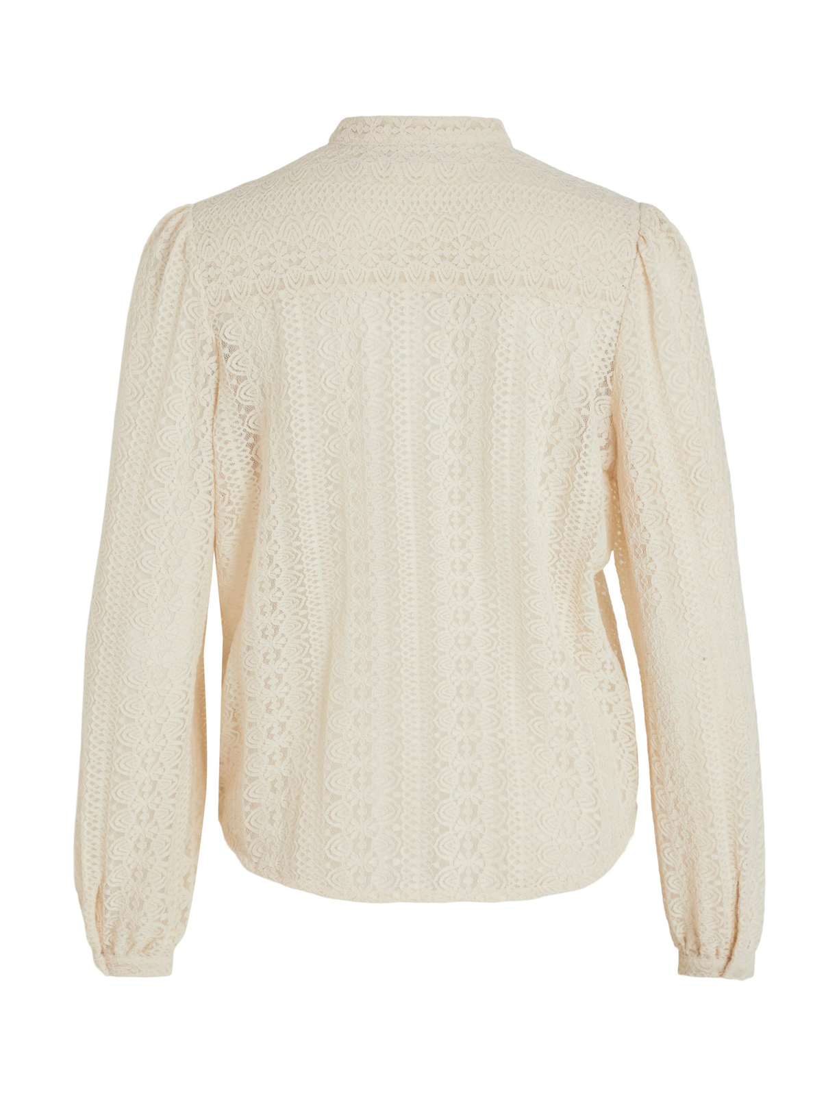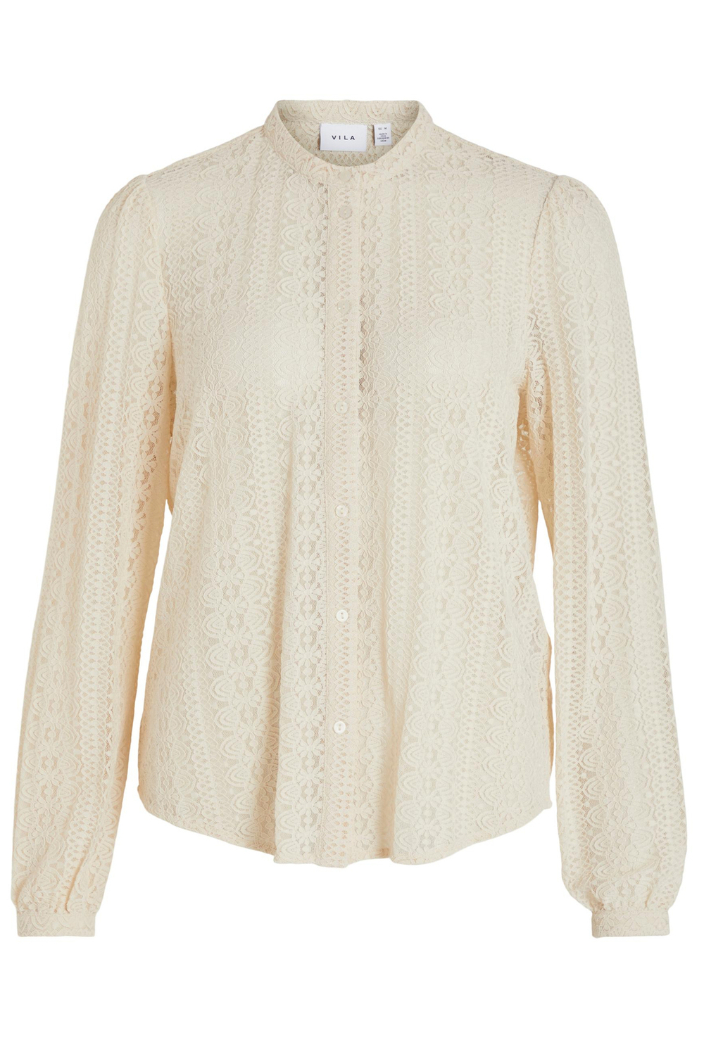 Deze elegante blouse van Vila is een unieke toevoeging aan je garderobe. De blouse is gemaakt van een delicate kanten stof in een zachte birch-kleur, wat bijdraagt aan een verfijnde uitstraling. Het complex patroon van het kant geeft een luxe gevoel, terwijl de regular fit zorgt voor comfort zonder concessies te doen aan stijl. Met een knoopsluiting aan de voorkant en een subtiele ronde hals, is deze blouse perfect voor zowel een casual als een meer formele look. De lange mouwen en normale lengte maken deze Vila blouse perfect voor de lentedagen wanneer je iets luchtigs en stijlvols wilt dragen. Combineer deze blouse met een nette broek voor een elegante werkoutfit of draag hem met een spijkerbroek voor een ontspannen weekendlook. Of je nu naar kantoor gaat of een informele bijeenkomst hebt, deze blouse biedt veelzijdigheid en klasse. Gemaakt van 95% polyamide en 5% elastan, biedt het een lichte stretch voor extra comfort.