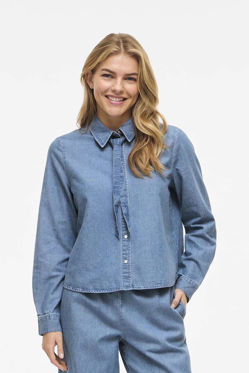 Deze stijlvolle denim blouse van Vila biedt een ideale balans tussen elegantie en casual comfort. De lichtblauwe denim stof in een stevige rinsewash brengt een frisse look die perfect past bij het voorjaar. Met de aandachttrekkende drukknoopsluiting en de klassieke puntkraag krijg je een verfijnde uitstraling zonder aan comfort in te boeten. De regular fit zorgt ervoor dat de blouse mooi valt en makkelijk te combineren is met zowel pantalons als jeans. Dankzij de lange mouwen en normale lengte is deze blouse een veelzijdige keuze voor uiteenlopende gelegenheden, van een doordeweekse werkdag tot een ontspannen weekend. De duurzame eigenschappen van het materiaal maken het ook een bewuste keuze voor wie zijn garderobe op een verantwoorde manier wil aanvullen. Of je het nu combineert met sneakers voor een casual look of met hakken voor een avondje uit, deze Vila blouse is een veelzijdige aanvulling op je garderobe.