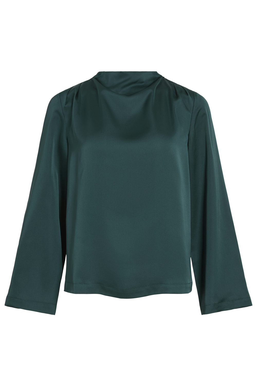 De Vila blouse in Ponderosa Pine is een elegante toevoeging aan je wintergarderobe. Gemaakt van 100% gerecycled polyester, biedt deze blouse niet alleen een stijlvolle uitstraling maar ook een milieubewuste keuze. De high neck zorgt voor een verfijnde look, terwijl de regular fit pasvorm comfort biedt. Met de lange mouwen is deze blouse perfect voor koudere dagen, zonder in te boeten aan stijl. De kleur straalt een rustgevende diepte uit, ideaal voor casual settings of een chique brunch.