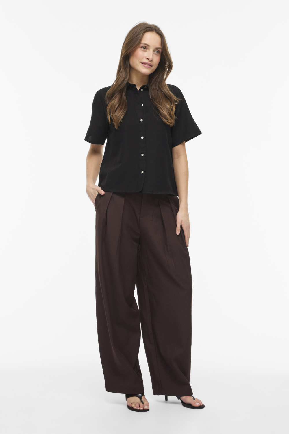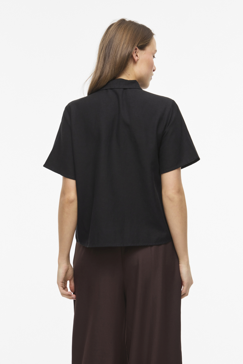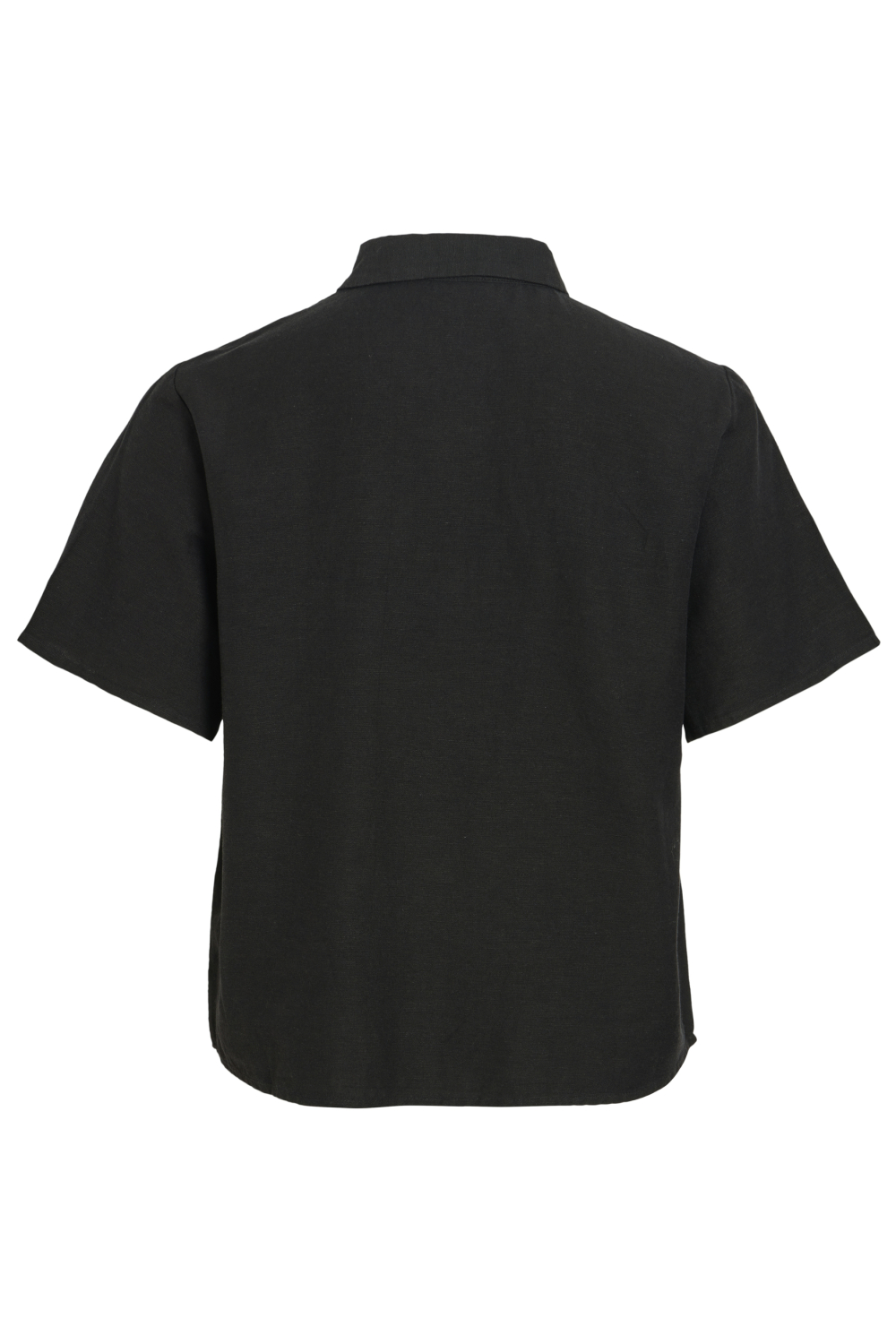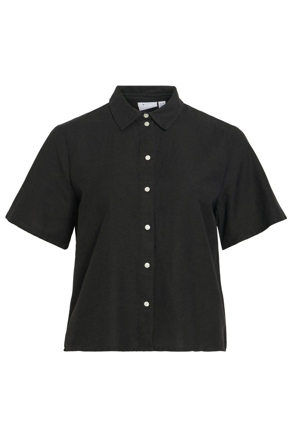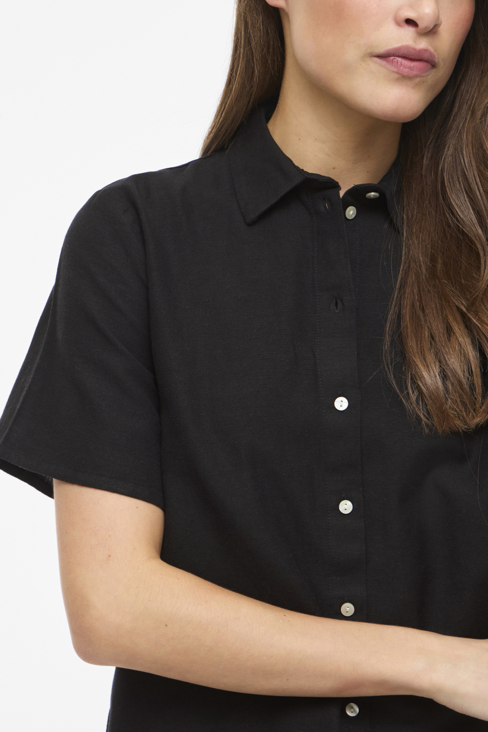 Deze elegante zwarte blouse van Vila biedt een perfecte balans tussen stijl en comfort. Met zijn reguliere pasvorm en korte mouwen is het ideaal voor de zomermaanden. De puntkraag en knoopsluiting geven een klassieke flair, terwijl de diepe kleur 'Black Beauty' veelzijdig en gemakkelijk te combineren is. Dankzij de duurzame samenstelling is deze blouse ook een verantwoorde keuze voor de bewuste koper. De zachte stof voelt prettig aan op de huid, wat bijdraagt aan het draagcomfort, of je nu een dag vol afspraken hebt of geniet van een avondje uit. Perfect geschikt voor een casual setting, maar kan ook uitstekend gestyled worden voor een zakelijke omgeving. Draag deze Vila blouse met een nette pantalon voor een formele uitstraling, of kies voor een comfortabele jeans voor een meer ontspannen look. Met zijn normale lengte is hij eenvoudig in te stoppen voor een geordende, modieuze look. Dit veelzijdige kledingstuk is een waardevolle toevoeging voor elke kledingkast en belooft veelzijdigheid voor diverse gelegenheden.