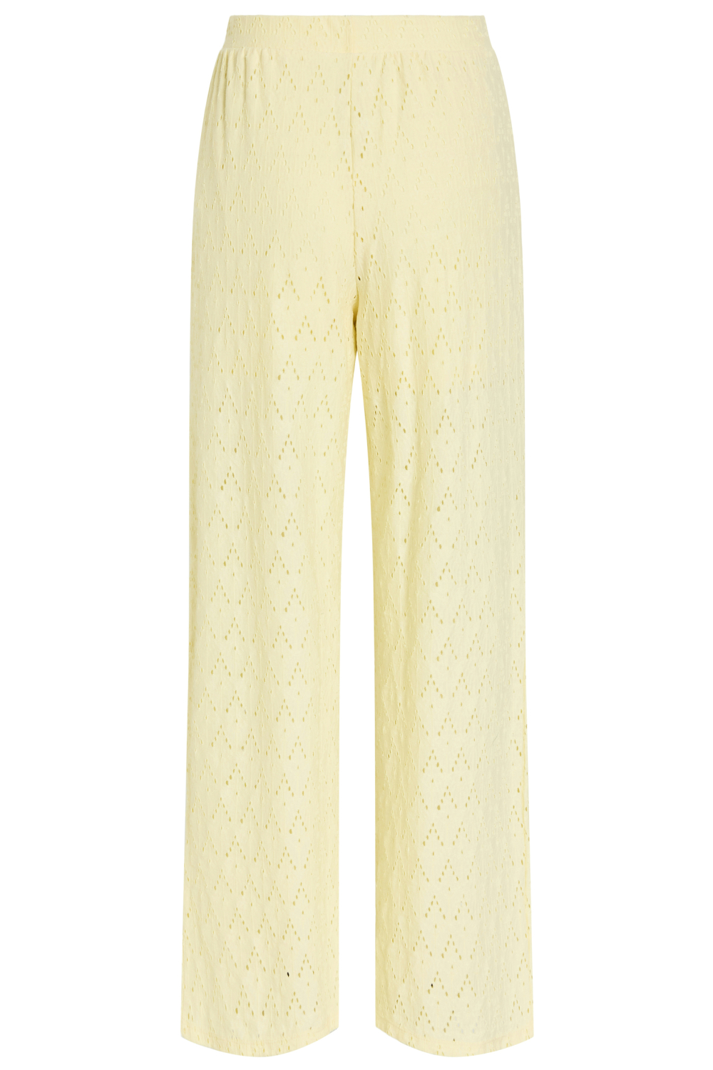 Deze stijlvolle pastelgele broek van Vila vormt een fijne toevoeging aan je lente-garderobe. Het wide leg ontwerp in combinatie met de high waist zorgt voor een relaxte en modieuze look. De broek heeft een sierlijk ajourpatroon dat een speels en licht effect geeft, ideaal voor zonnige dagen. Dankzij de elastische boord ervaar je moeiteloos comfort en flexibiliteit, wat het de perfecte keuze maakt voor een casual dagje uit of een gezellige lunchafspraak. Gemaakt van duurzame materialen, bestaande uit 64% gerecycled polyester, 34% katoen en 2% elastan, combineert deze broek stijl met milieuvriendelijke keuzes. De normale lengte maakt het gemakkelijk om te combineren met zowel platte schoenen als elegante hakken. Of je nu een wandeling maakt in het park of vrienden ontmoet op een terras, deze Vila broek biedt een frisse en moderne uitstraling die goed past bij een casual setting. Combineer het met een eenvoudig topje en je bent klaar om te gaan.