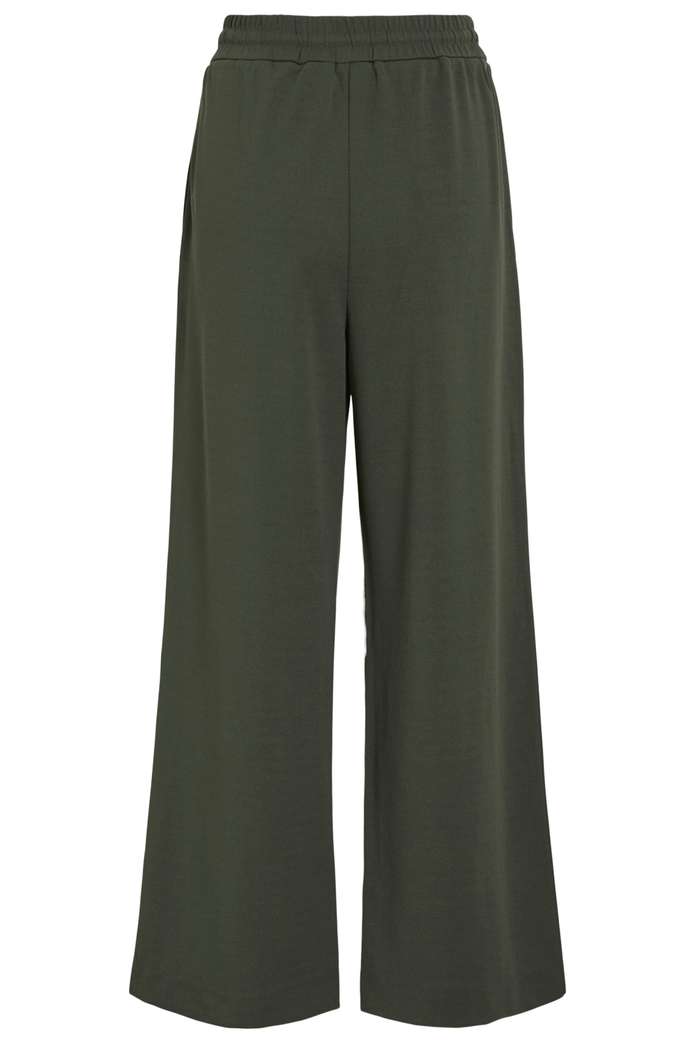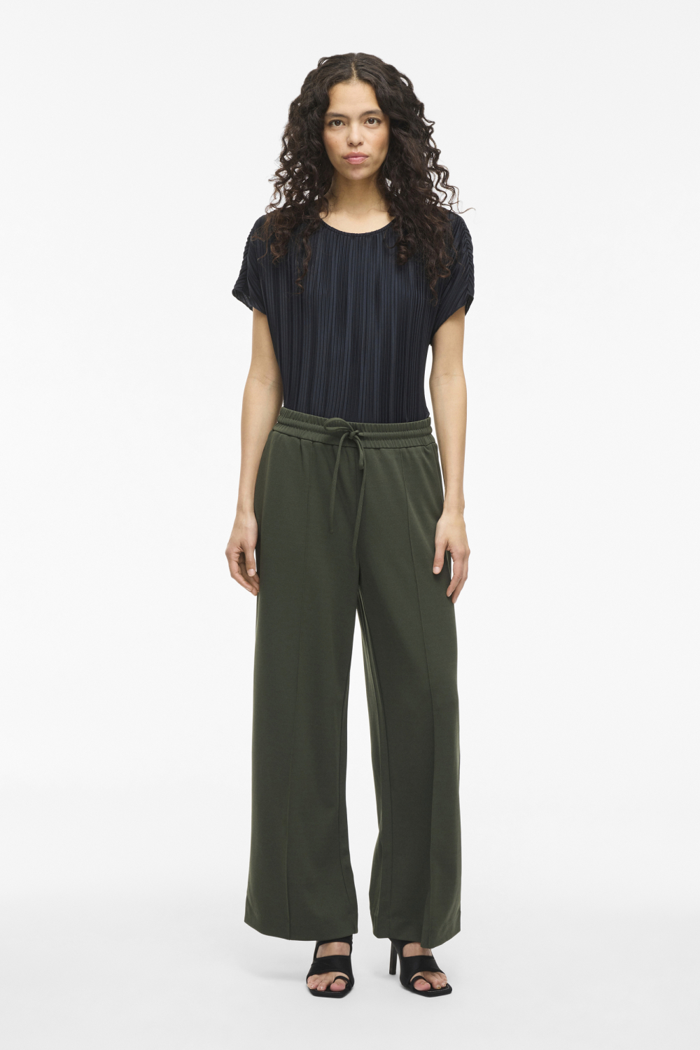 Deze brede, groene damesbroek van Vila is een stijlvolle keuze voor elke zomerse dag. Gemaakt van 95% polyester en 5% elastan, biedt de broek een lichte en luchtige stof die comfortabel meegaat met je bewegingen. De high waist pasvorm en de elastische tailleboord zorgen voor een fijne aansluiting en een flatterende look, terwijl de wijde pijpen een moderne twist geven aan je outfit. De diepe kleur genaamd 'Deep Depths' voegt een stijlvolle touch toe aan jouw garderobe.