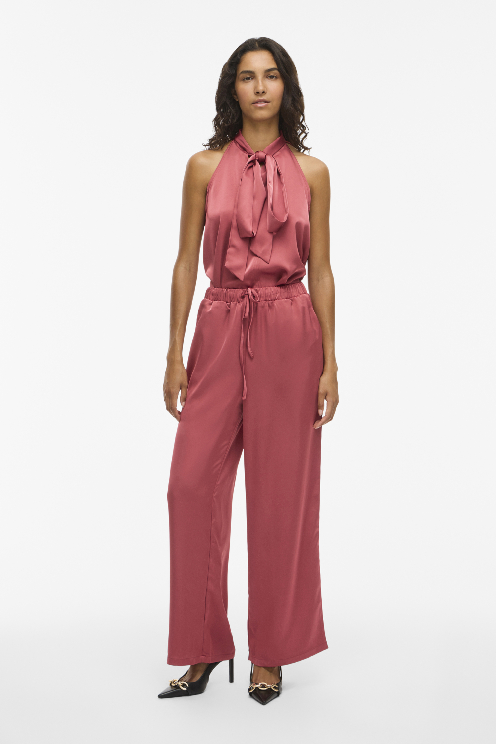 Deze elegante Vila broek in de kleur "Holly Berry" is een veelzijdige toevoeging aan je garderobe voor het herfstseizoen. Het straight fit design zorgt voor een relaxte uitstraling, terwijl de high waist zorgt voor een flatterende pasvorm. Met een elastische boord en subtiele striksluiting rondom de taille, biedt deze broek zowel comfort als stijl. Het materiaal van 100% polyester levert een lichte glans en een zachte textuur, wat perfect is voor zowel casual als meer geklede gelegenheden. De broek is ideaal voor een dag op kantoor of een ontspannen weekendje uit. De steekzakken voegen praktische details toe zonder afbreuk te doen aan het strakke silhouet. Combineer deze Vila broek met een losse blouse of een aansluitende top om je look compleet te maken. Of je nu een dagje op pad gaat of een avondje uit plant, deze broek is een stijlvolle keuze die moeiteloos een statement maakt.
