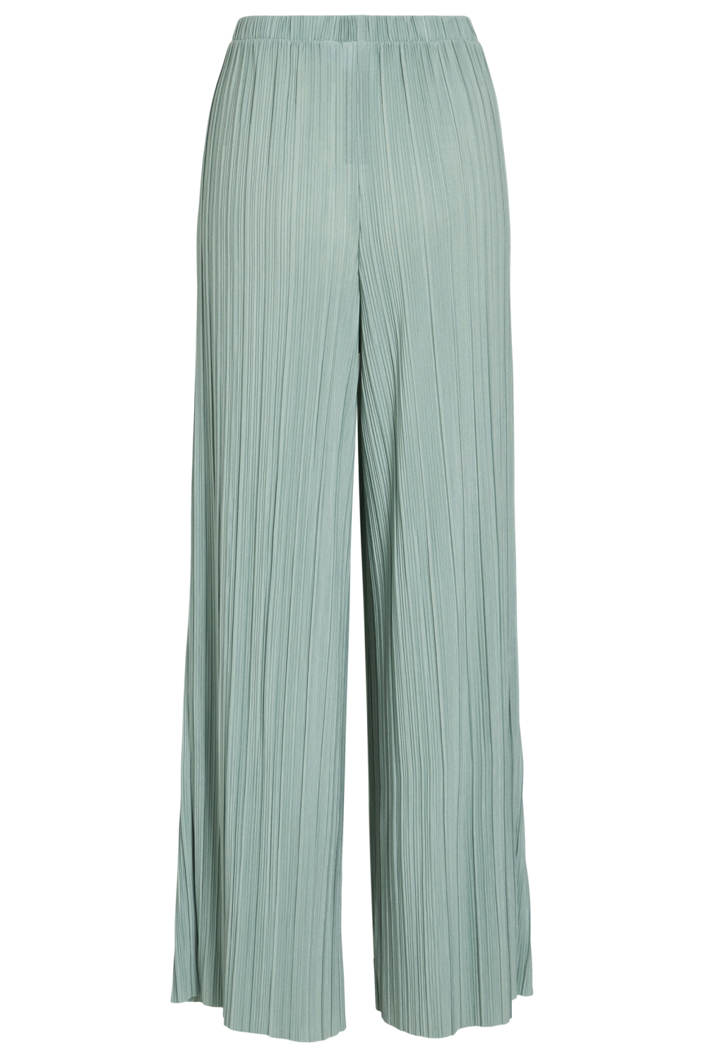 Deze stijlvolle plissé broek van Vila in de kleur Blue Surf voegt een vleugje verfijnde elegantie toe aan je zomergarderobe. Met een comfortabel hoge taille en een elastische boord sluit de broek perfect aan, terwijl de wide leg pasvorm voor een luchtige en ontspannen uitstraling zorgt. De combinatie van 65% polyester en 35% viscose maakt de stof licht en draagbaar voor warme zomerdagen. De subtiele plissé structuur geeft deze Vila broek een uniek karakter dat makkelijk te combineren is voor zowel casual als meer formele gelegenheden. Draag hem met een eenvoudige top en sandalen voor een dagje uit, of maak het stijlvol met een blouse en hakken voor een avondje uit. De normale lengte zorgt ervoor dat hij perfect past bij verschillende lichaamstypes, waardoor jij je altijd op je gemak voelt in deze veelzijdige broek.
