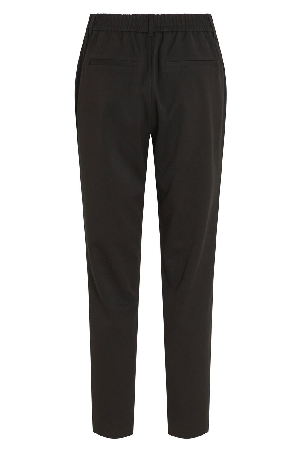 Deze elegante zwarte broek van Vila combineert comfort en stijl op een slimme manier. Gemaakt van een zachte stofmix van 66% polyester, 28% viscose en 6% elastan, zorgt de broek voor een heerlijke pasvorm met voldoende bewegingsvrijheid. Dankzij de high waist en elastische boord zit hij altijd perfect. De subtiele steekzakken voegen een praktisch element toe zonder in te boeten aan stijl. De 7/8 lengte maakt deze broek een veelzijdige keuze voor elk seizoen.