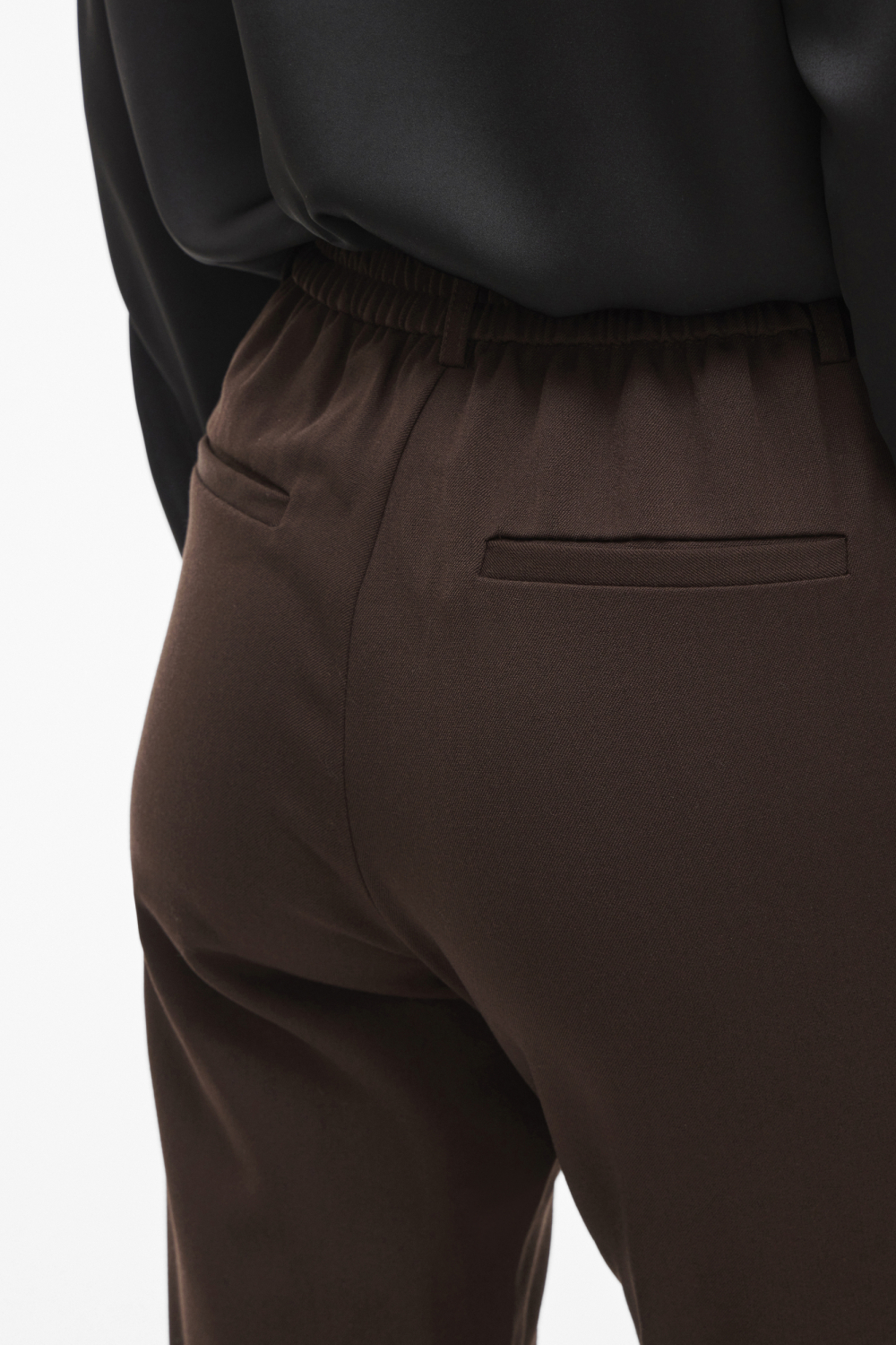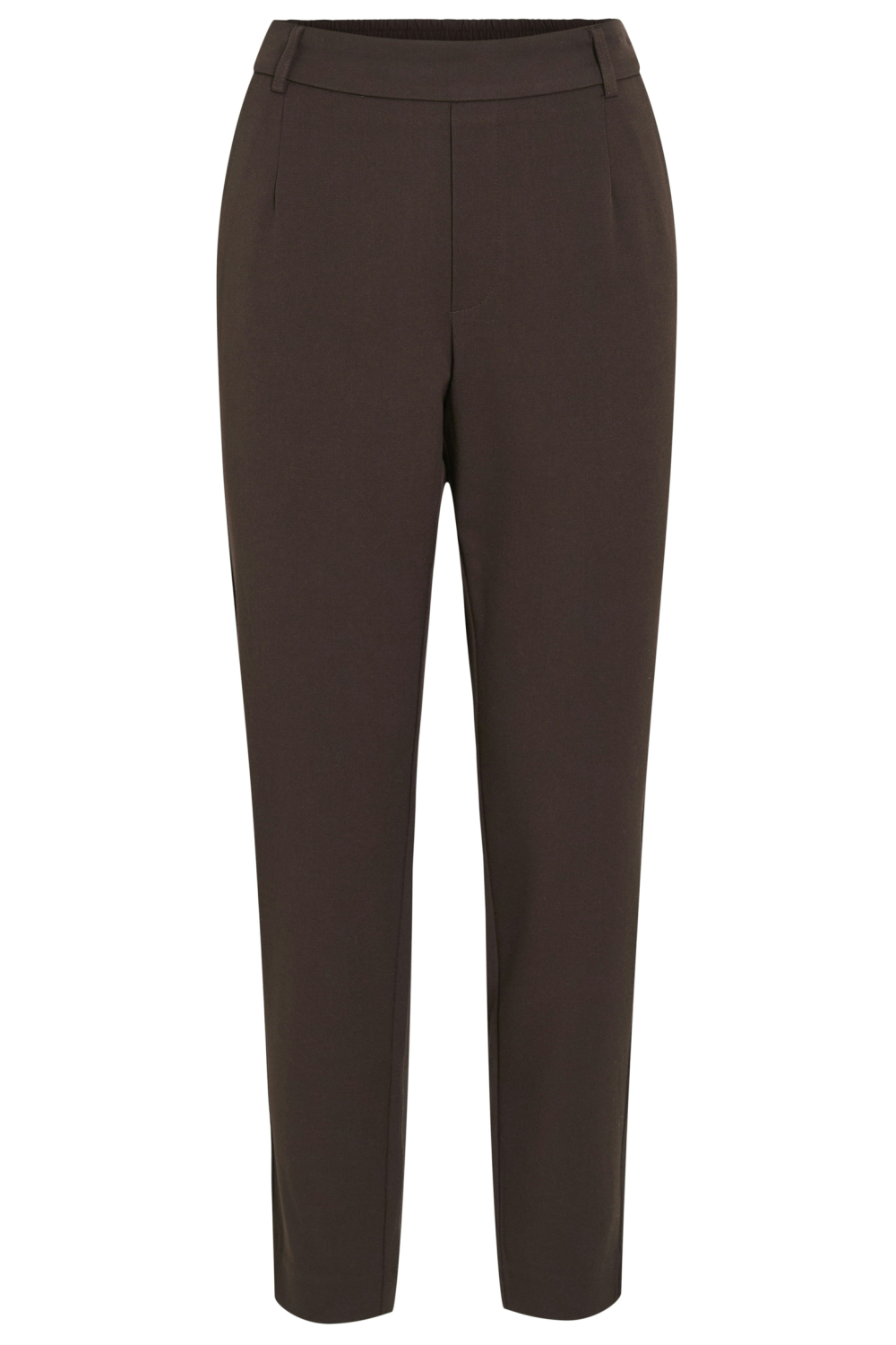 Deze casual damesbroek van Vila in de kleur coffee bean is een stijlvolle optie voor jouw dagelijkse garderobe. De regular pasvorm en high waist zorgen voor een comfortabele en flatterende look. Gemaakt van een duurzame mix van polyester, viscose en elastan, is deze broek zowel zacht als vormvast, waardoor hij geschikt is voor uiteenlopende situaties. Met zijn elastische boord en handige steekzakken combineert hij moeiteloos comfort met functionaliteit. De normale lengte van de broekspijpen en de subtiele details maken deze broek veelzijdig genoeg voor zowel een dag op kantoor als een ontspannen weekenduitje. Draag hem met een blouse voor een formele uitstraling, of kies voor een casual top voor een relaxte look. Deze Vila broek biedt eindeloze combinatiemogelijkheden in jouw kledingkast.