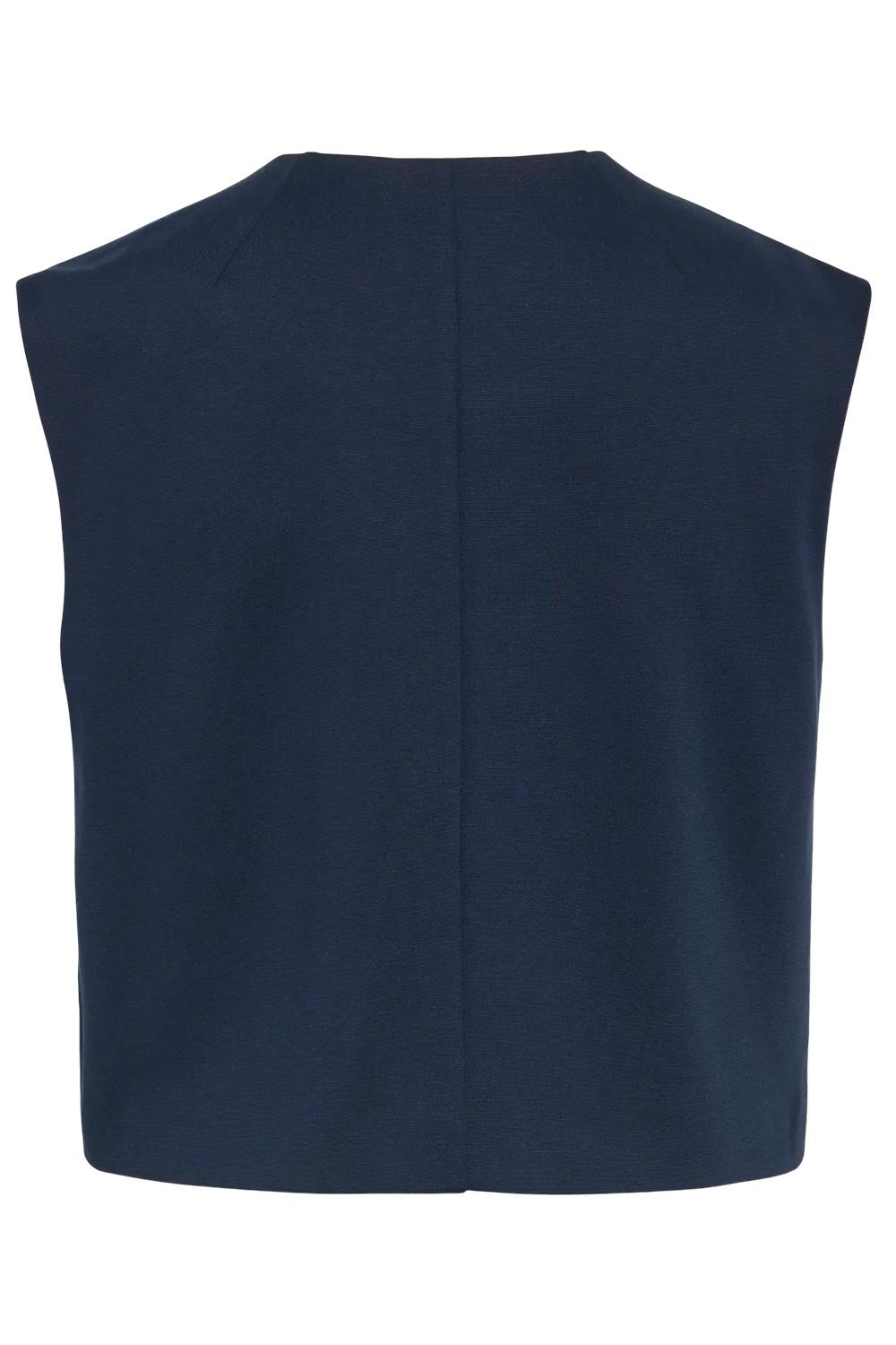 Dit navy blazer gilet van Vila is een veelzijdige aanvulling op jouw garderobe. Met een regular pasvorm en knoopsluiting straalt het een casual en toch verfijnde stijl uit. De diepe navy kleur in combinatie met de gouden knopen geeft het gilet een elegante touch, perfect voor dagelijks gebruik of een zakelijke casual look. De ronde hals en mouwloze snit maken het ideaal voor de lente, wanneer de temperatuur stijgt en je uitstraling iets luchtigs vraagt. Het gilet is gemaakt van een soepele mix van polyester, viscose en elastaan, wat zowel comfort als een lichte stretch biedt. Handige steekzakken voegen functionaliteit toe zonder afbreuk te doen aan de nette uitstraling. Dit Vila gilet kun je moeiteloos combineren met een blouse voor op kantoor, of met een casual jeans en sneakers voor een weekenduitje. Of je nu een drukke werkdag hebt of een ontspannen middag met vrienden plant, dit gilet biedt de juiste balans tussen stijl en comfort.