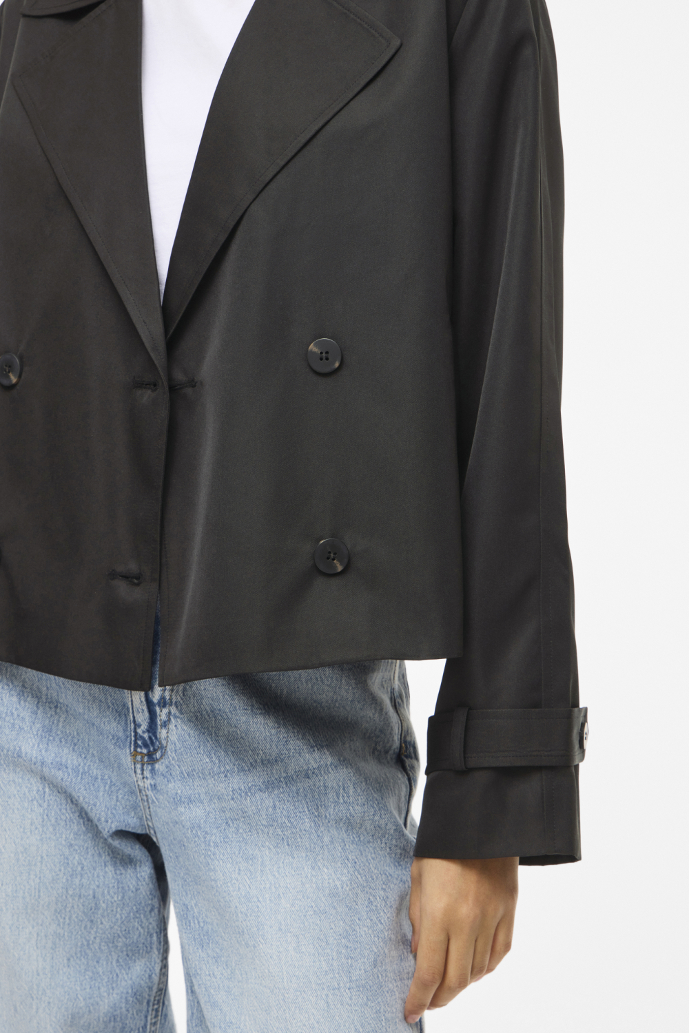 Deze casual jas van Vila, in de kleur Black Beauty, is een veelzijdige toevoeging aan je voorjaarsgarderobe. Het stijlvolle ontwerp met reverskraag en knoopsluiting combineert moeiteloos casual chic met comfort. Gemaakt van 50% gerecycled polyester, straalt de jas zowel duurzaamheid als stijl uit. Met zijn regular fit en korte lengte biedt deze jas een moderne uitstraling die perfect aansluit bij een ontspannen weekendlook of een informele afspraak. De steekzakken voegen niet alleen functionaliteit toe, maar versterken ook het relaxte ontwerp. De jas komt het beste tot zijn recht in een casual setting dankzij zijn tijdloze design en lange mouwen voor de frisse lenteavonden. Combineer het met een lichte jeans en een eenvoudig T-shirt voor een moeiteloze look. Of je nu een wandeling in het park maakt of een terrasje pakt met vrienden, deze Vila jas is de ideale keuze voor moeiteloze elegantie in het dagelijks leven. Meer informatie: De totale lengte is 54 cm bij maat 36.