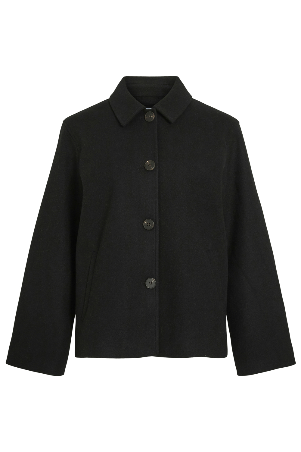 Deze stijlvolle damesjas van Vila, in de kleur Black Beauty, is een essentiële aanvulling voor je herfstgarderobe. Gemaakt van 100% polyester, biedt deze jas een comfortabel draaggevoel. De regular pasvorm, samen met de puntkraag en knoopsluiting, geeft je een moderne en toch klassieke uitstraling. De lange mouwen en normale lengte maken het tot een veelzijdig stuk dat goed past bij verschillende outfits. Dankzij de handige steekzakken kun je je essentials gemakkelijk meenemen.