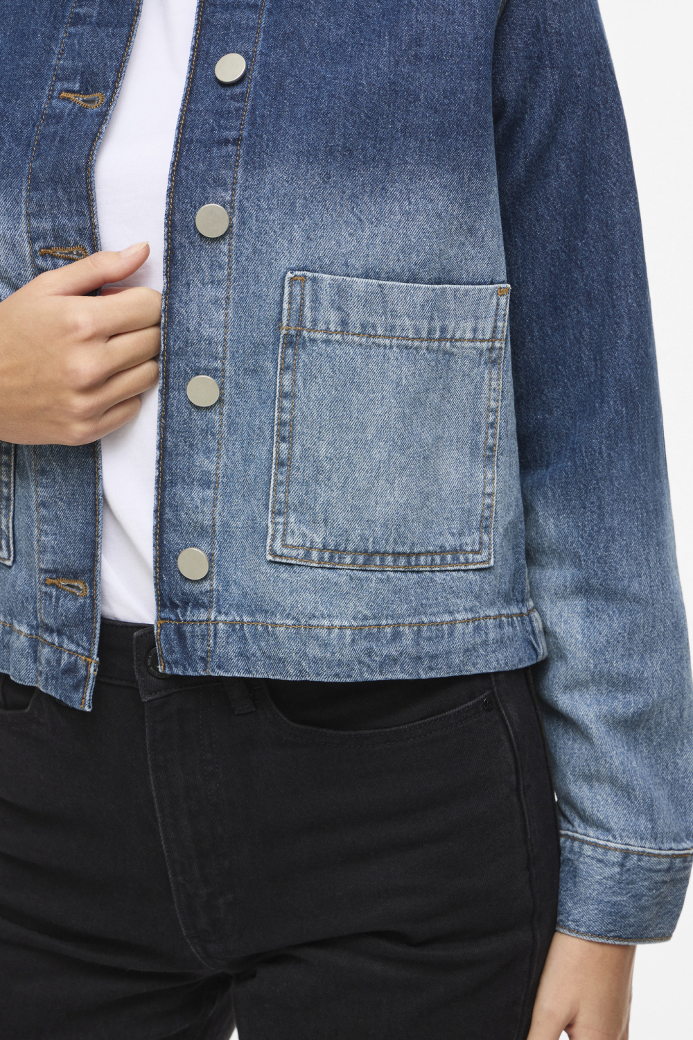 Deze denim jas van Vila is een stijlvolle en veelzijdige aanvulling op je voorjaarsgarderobe. Met een regular fit en een medium blue denim kleur zorgt deze jas voor een moeiteloos coole uitstraling. De knoopsluiting en de klassieke puntkraag voegen een tijdloze charme toe. Gemaakt van 80% katoen en 20% gerecycled katoen, biedt het niet alleen comfort, maar ook duurzaamheid. De bleached wash geeft de jas een speelse, verfrissende uitstraling die ideaal is voor casual dagen en ontspannen avonden. Met steekzakken aan de voorkant is deze Vila jas zowel praktisch als stijlvol. De normale lengte en lange mouwen maken het een veelzijdig mode-item dat je gemakkelijk kunt combineren met verschillende outfits. Perfect om te dragen tijdens een lentewandeling in het park of een ontspannen middag met vrienden. Of je nu kiest voor een casual look met jeans of een wat chiquer ensemble, deze jas past perfect bij elke gelegenheid. Voeg deze denim favoriet toe aan je collectie voor een moeiteloos stijlvolle uitstraling.